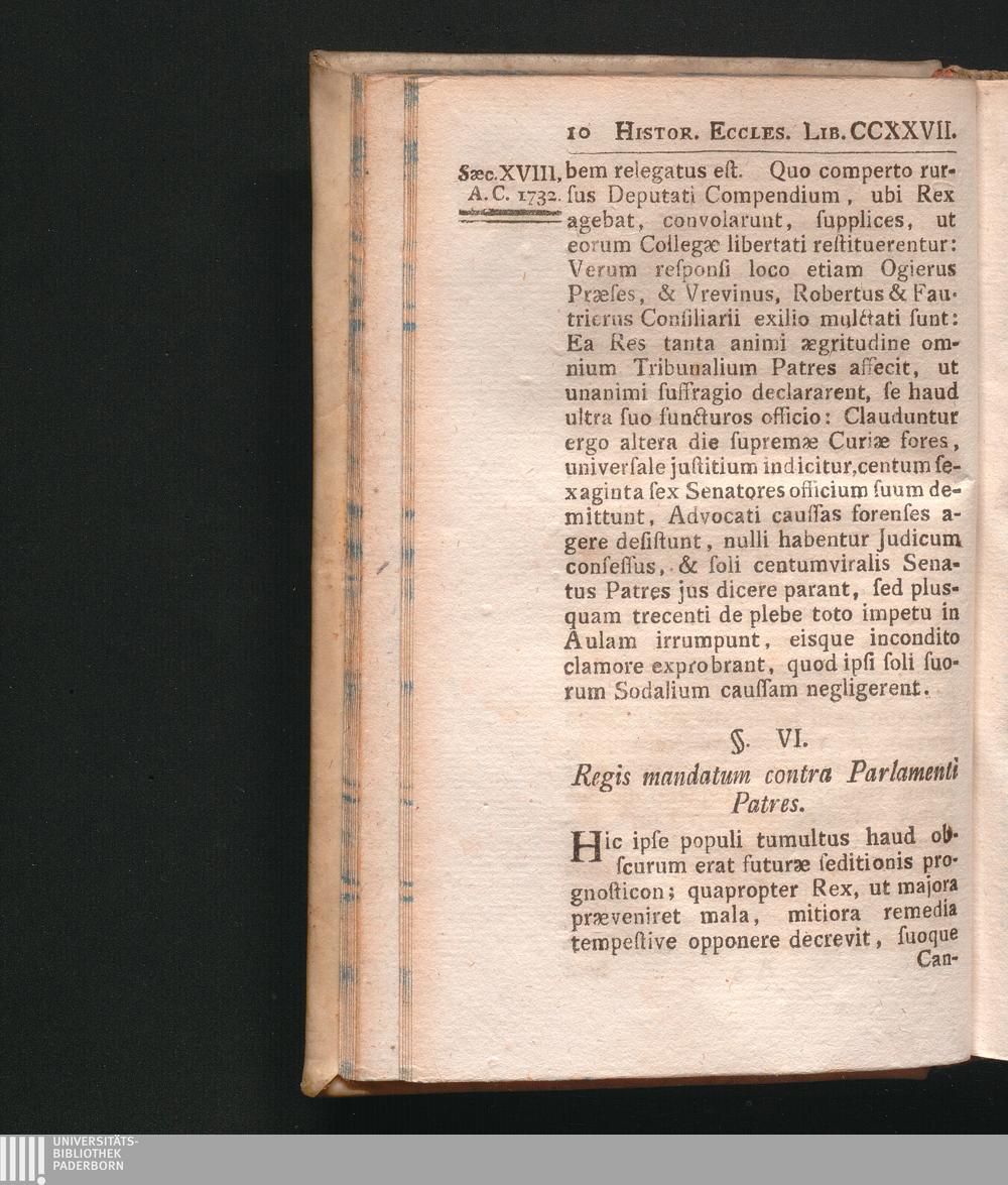 §. 6. Regis mandatum contra Parlamenti Senatores.