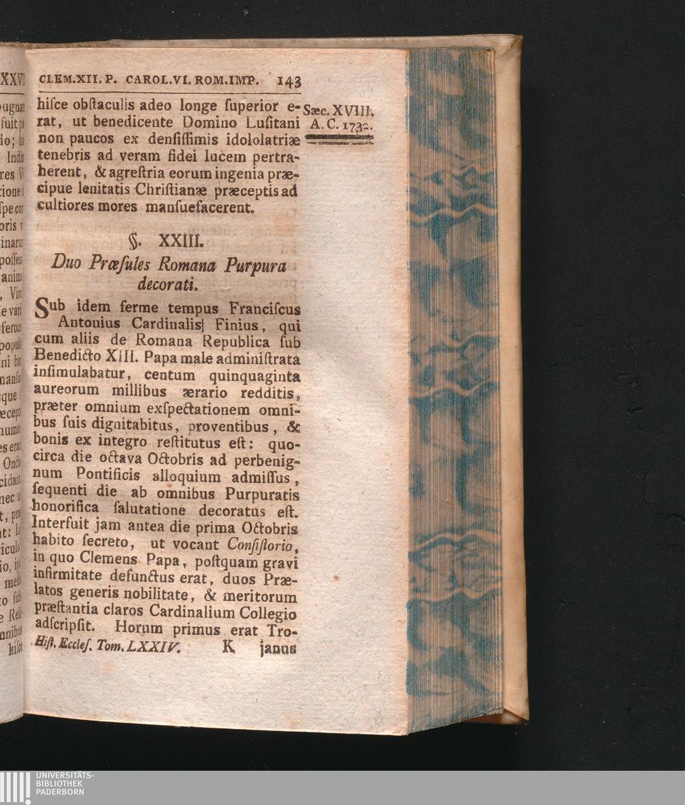 §. 23. Duo Præsules Romana Purpura a Clemente XII. decorati.