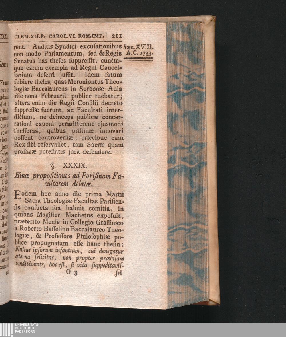 §. 39. Binæ propositiones ad Parisinam Facultatem delatæ & a Basselino propugnat[...]