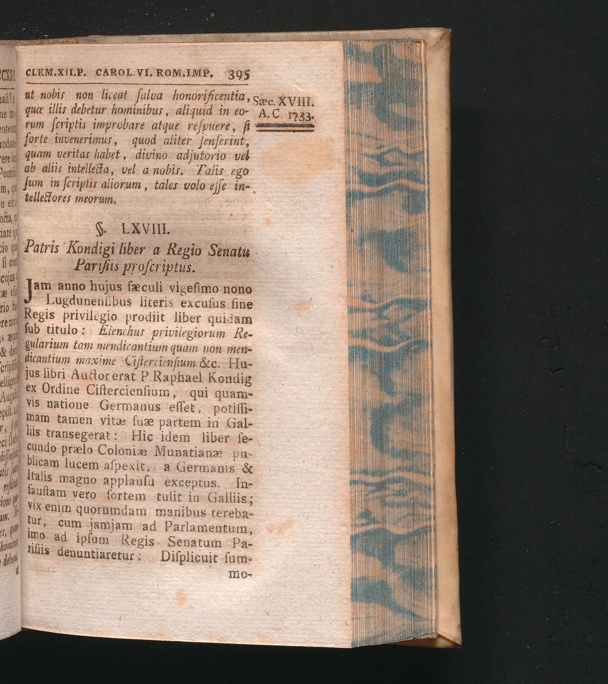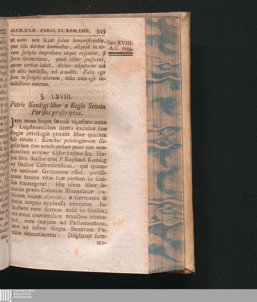 §. 68. Patris Kondigi liber a Regio Senatu Parisiis proscriptus.