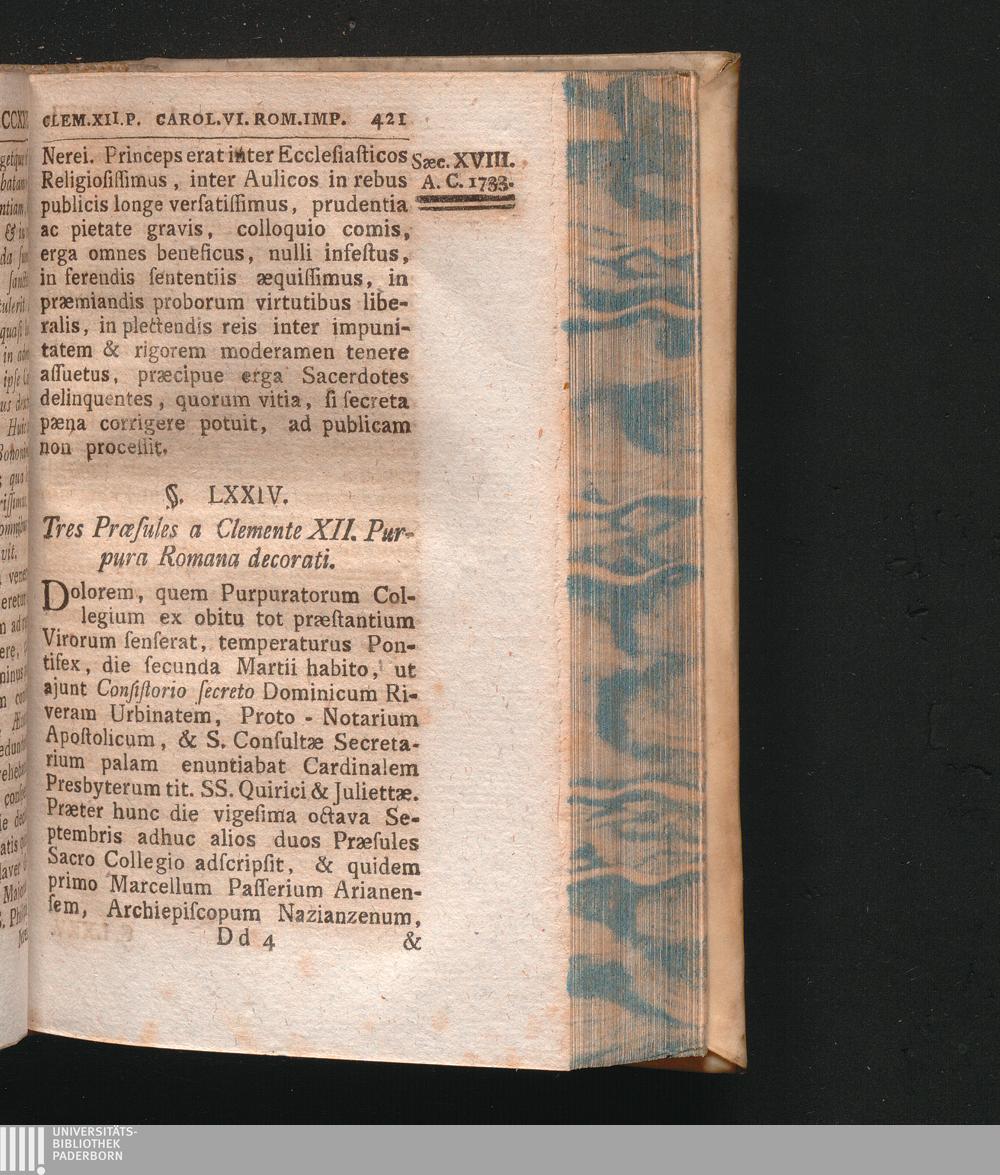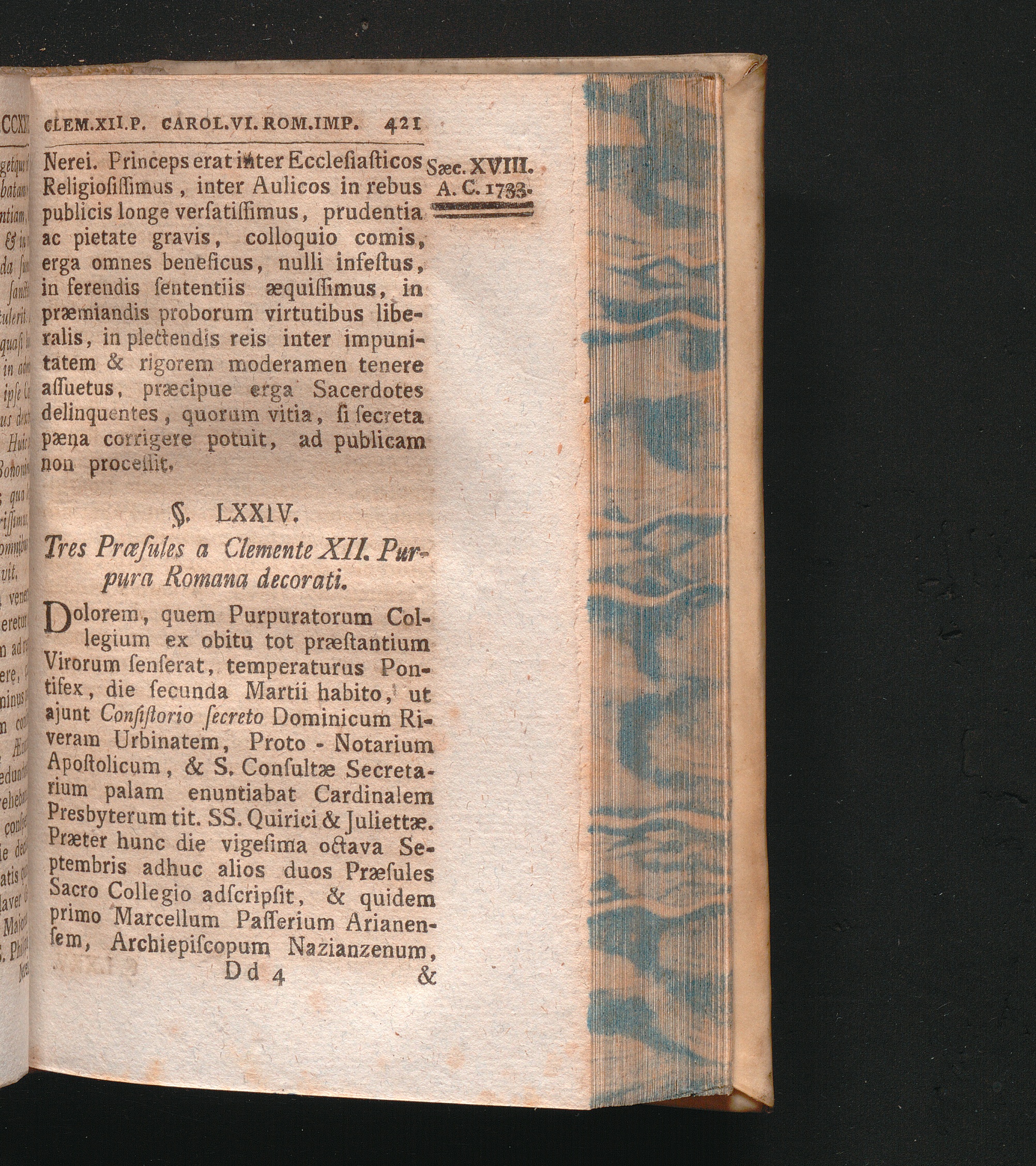§. 74. Tres Præsules a Clemente XII. Pontifice Romana Purpura decorati.
