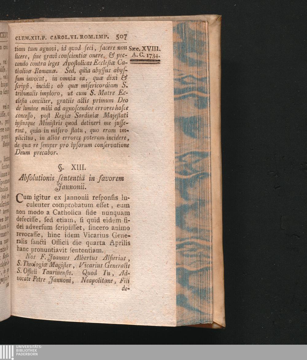 §. 13. Absolutionis sententis in ejusdem favorem pronuntiata.