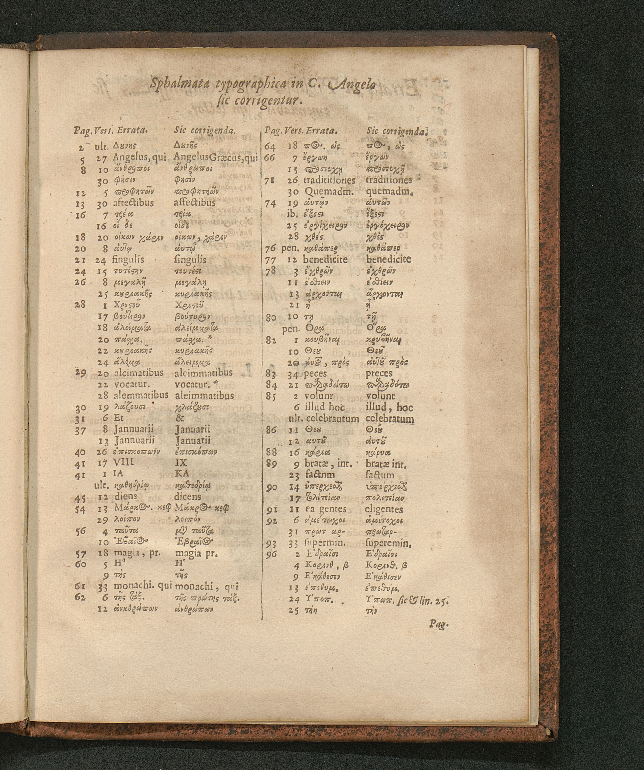 Sphalmata typographica in C. Angelo sic corrigentur.