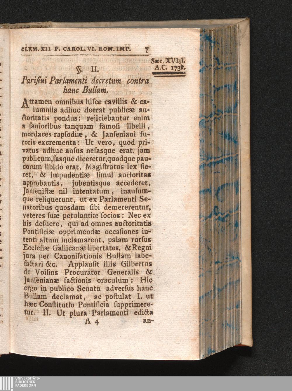 §. 2. Parisini Parlamenti decretum contra Canonisationis Bullam.