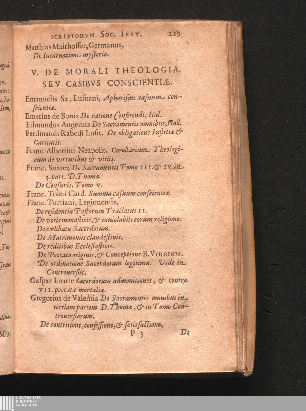 V. De Morali Theologia, Sev Casibvs Conscientiæ.