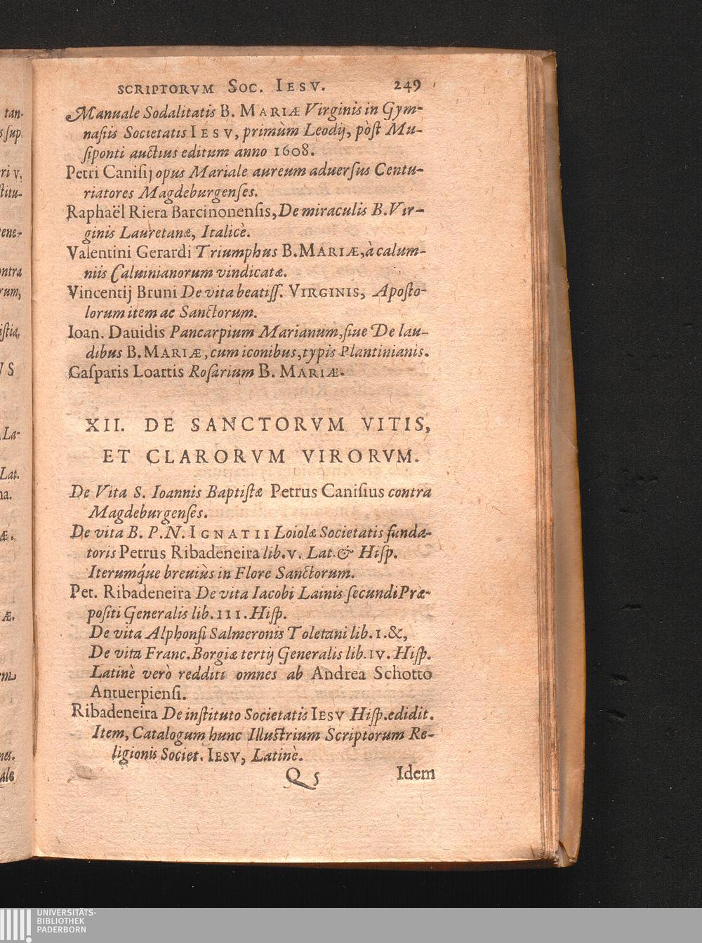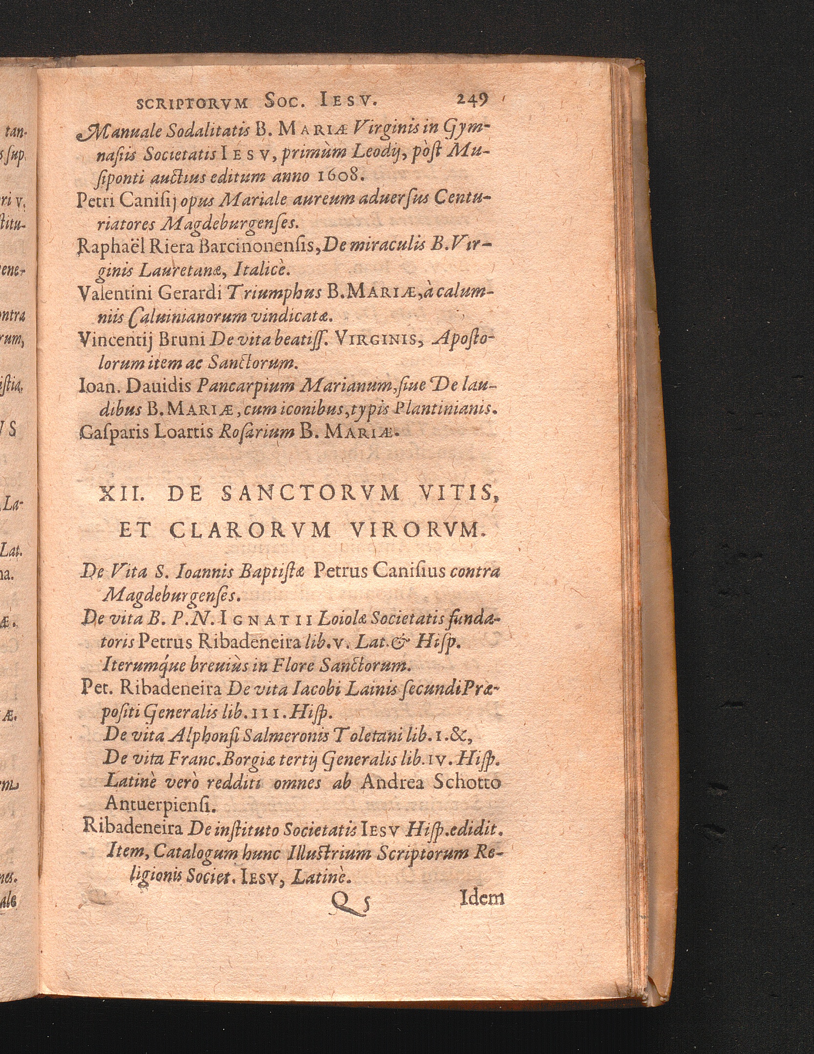 XII. De Sanctorvm Vitis, Et Clarorvm Virorvm.