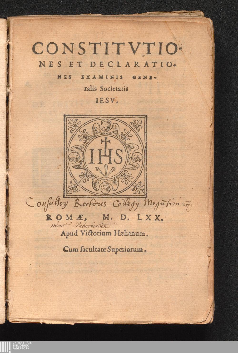 Constitvtiones Et Declarationes Examinis Generalis Societatis Iesv