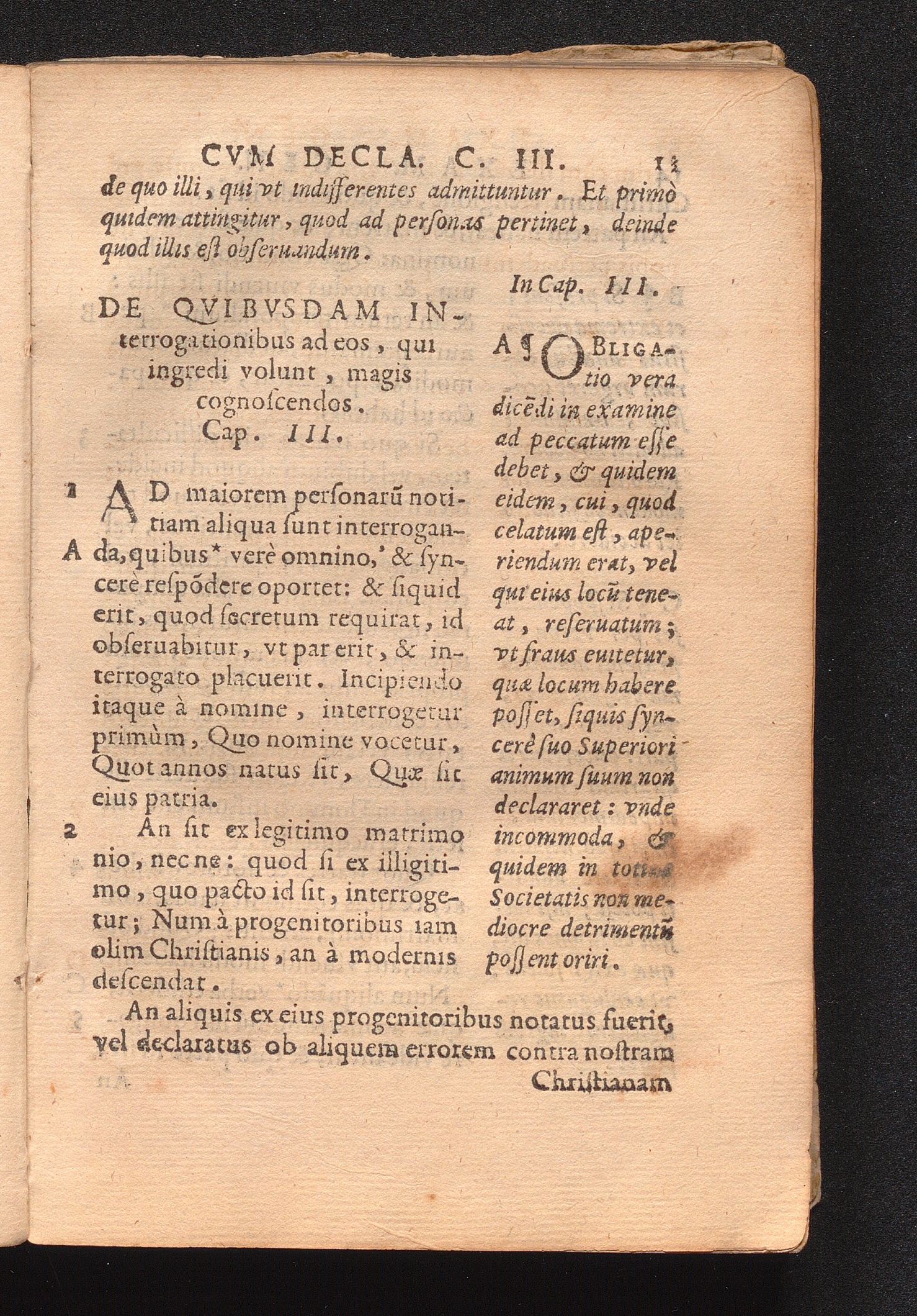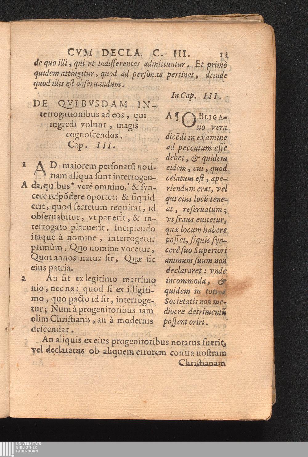 De Qvibvsdam Interrogationibus ad eos, qui ingredi volunt, magis cognoscendos. Cap. III.