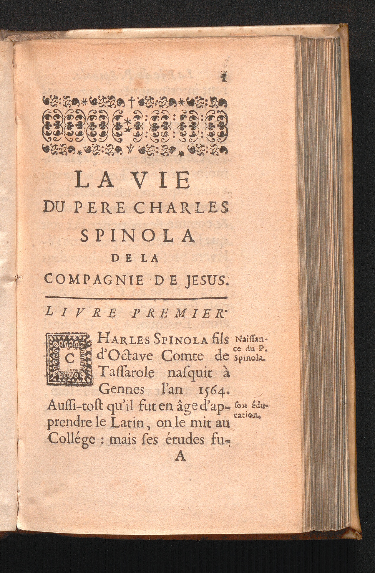 La Vie Du Pere Charles Spinola De La Compagnie De Jesus / Par le P. Pierre Joseph D'Orleans de la mesme Compagnie