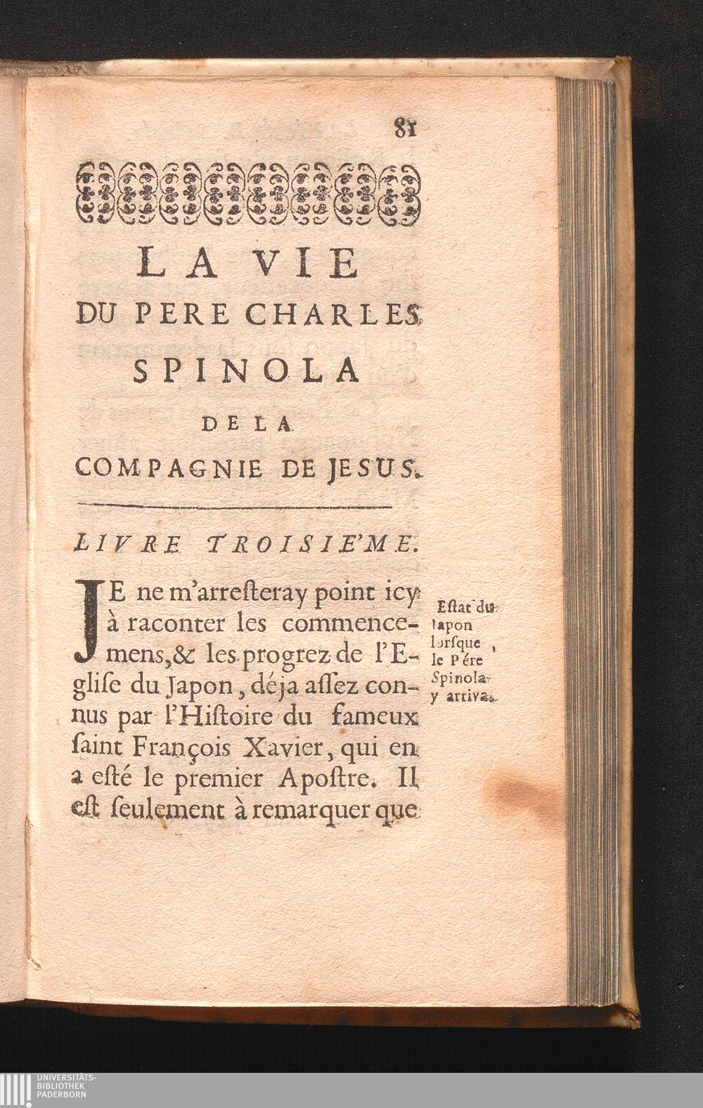 La Vie Du Pere Charles Spinola De La Compagnie De Jesus / Par le P. Pierre Joseph D'Orleans de la mesme Compagnie