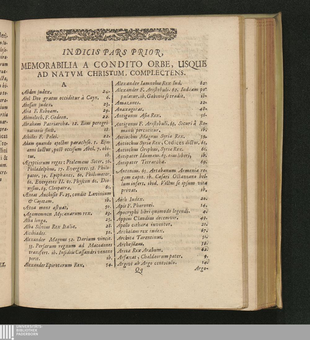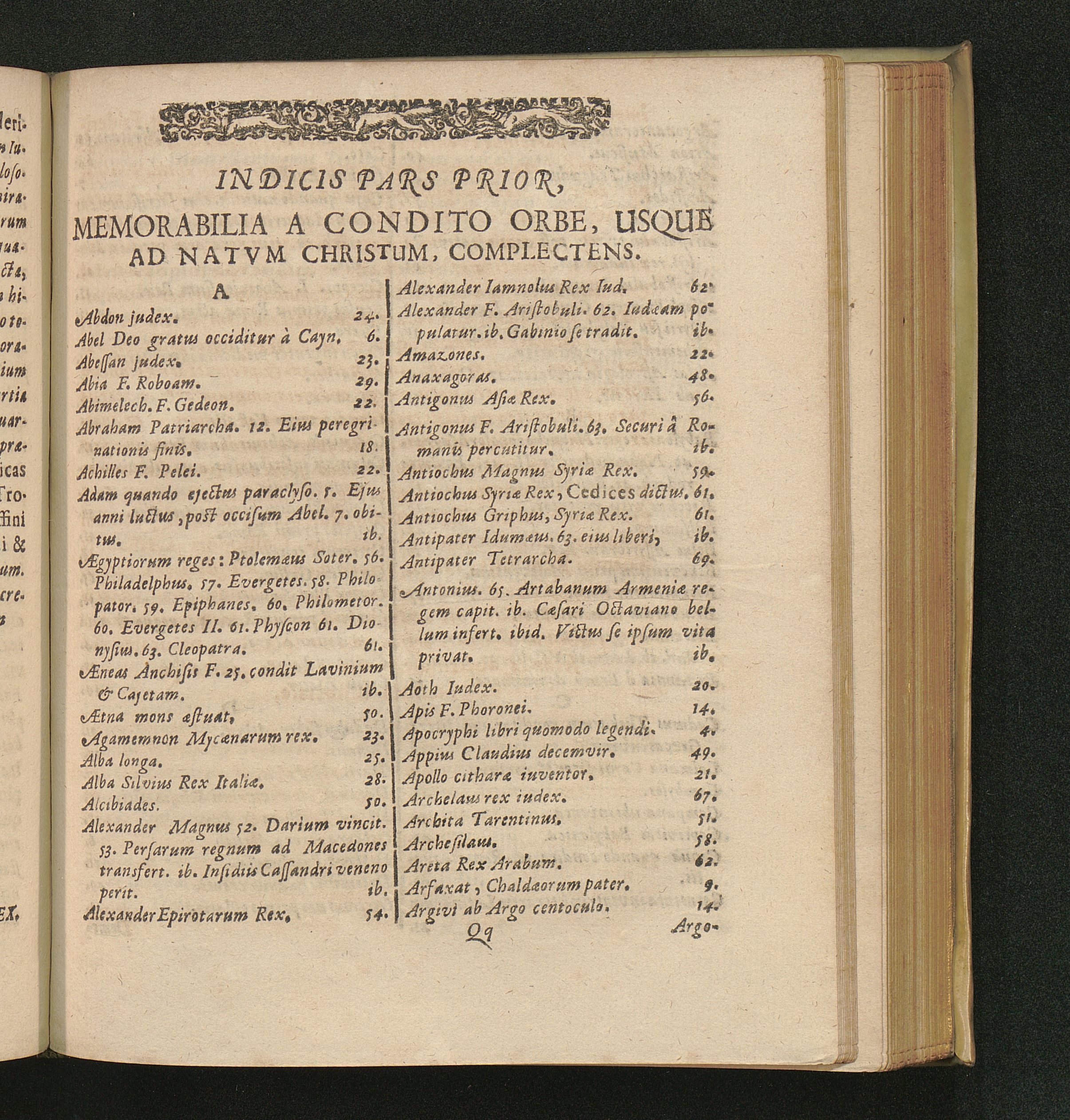 Indicis Pars Prior, Memorabilia A Condito Orbe, Usque Ad Natvm Christum, Complectens.