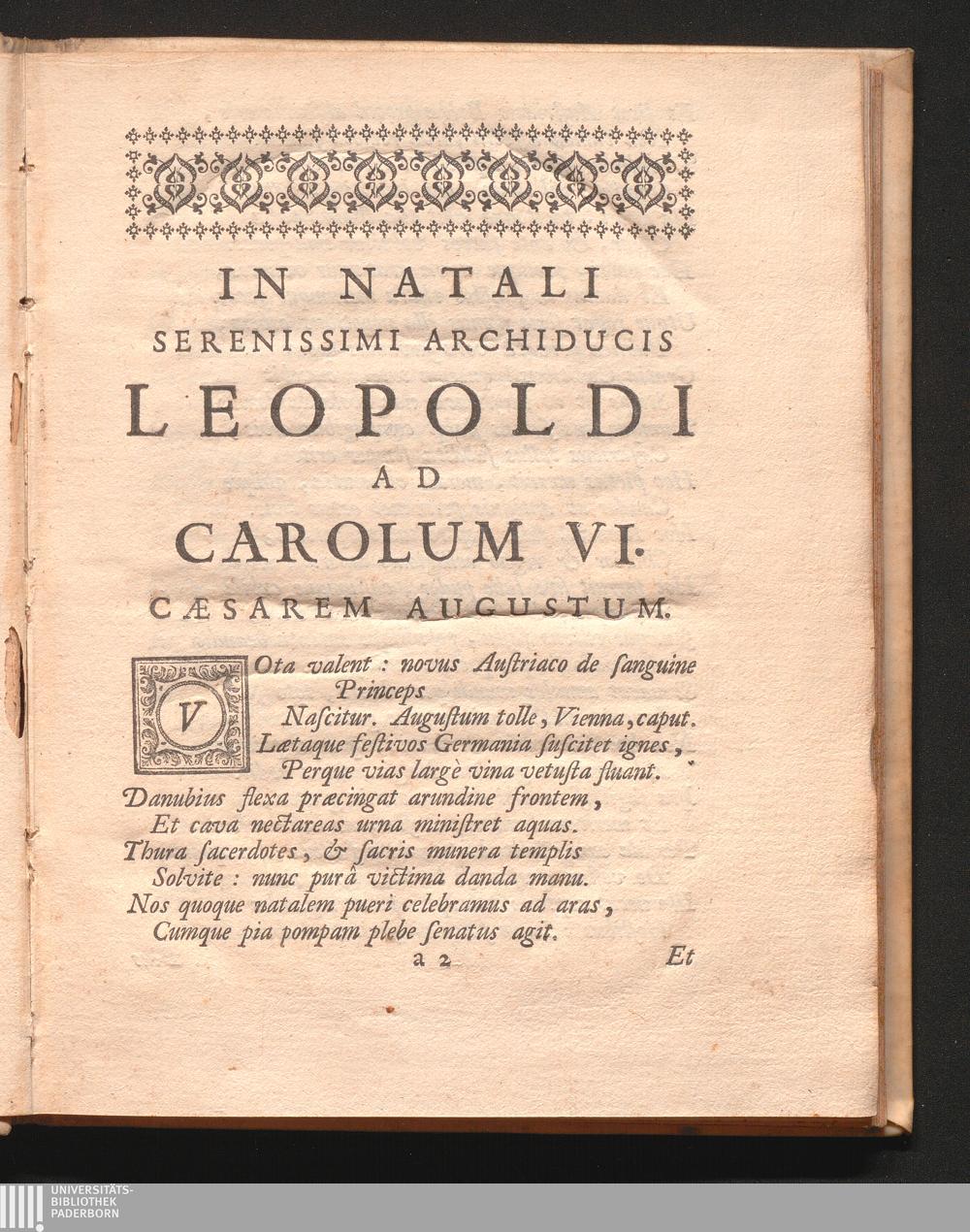 In Natali Serenissimi Archiducis Leopoldi Ad Carolum VI. Cæsarem Augustum.