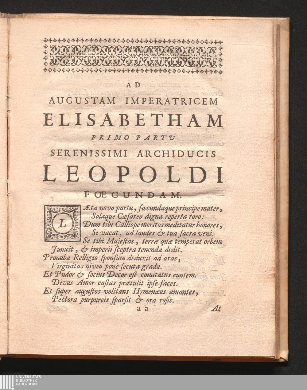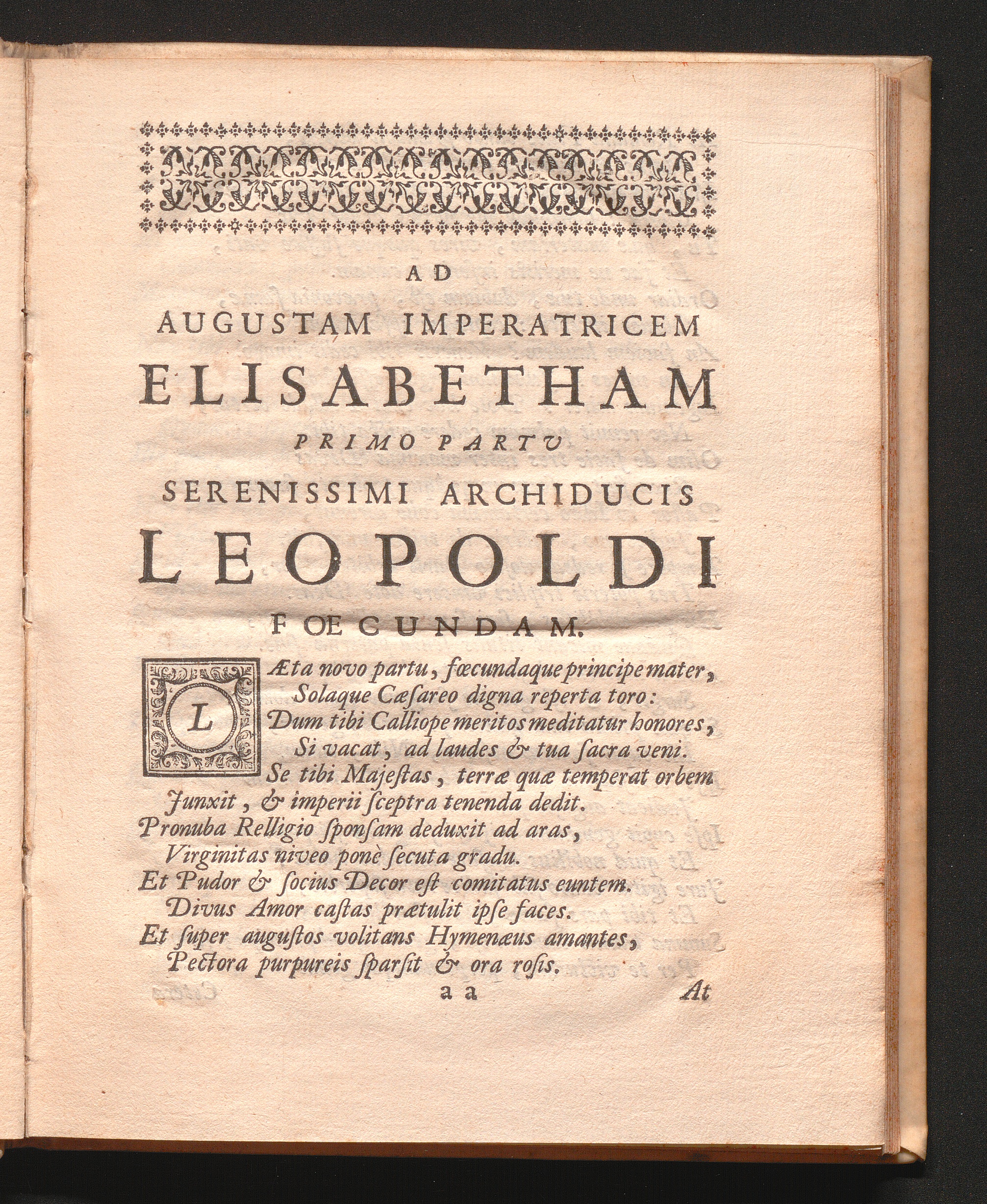 Ad Augustam Imperatricem Elisabetham Primo Partv Serenissimi Archiducis Leopoldi Fœcundam.