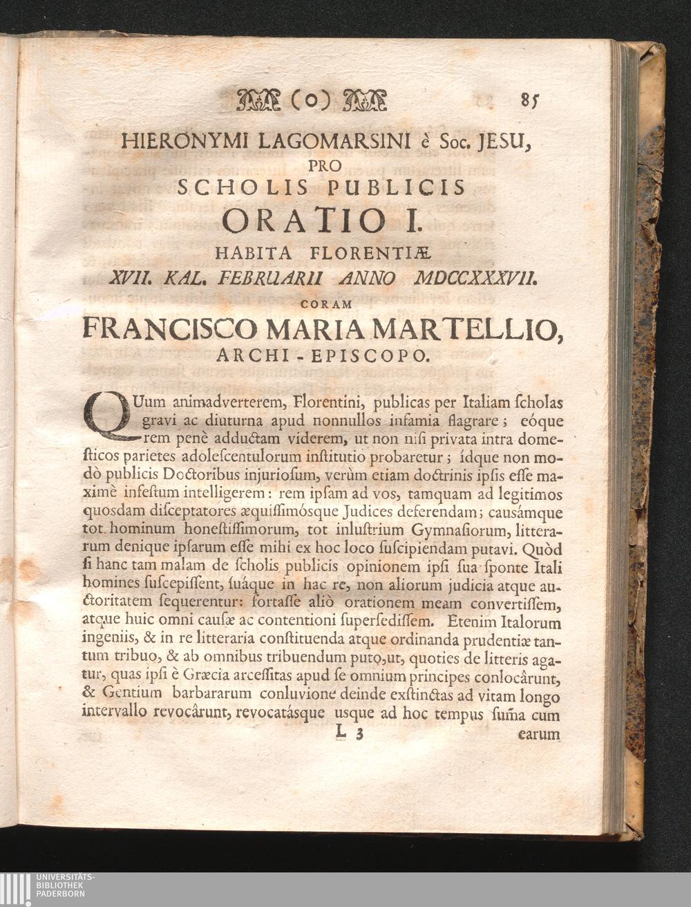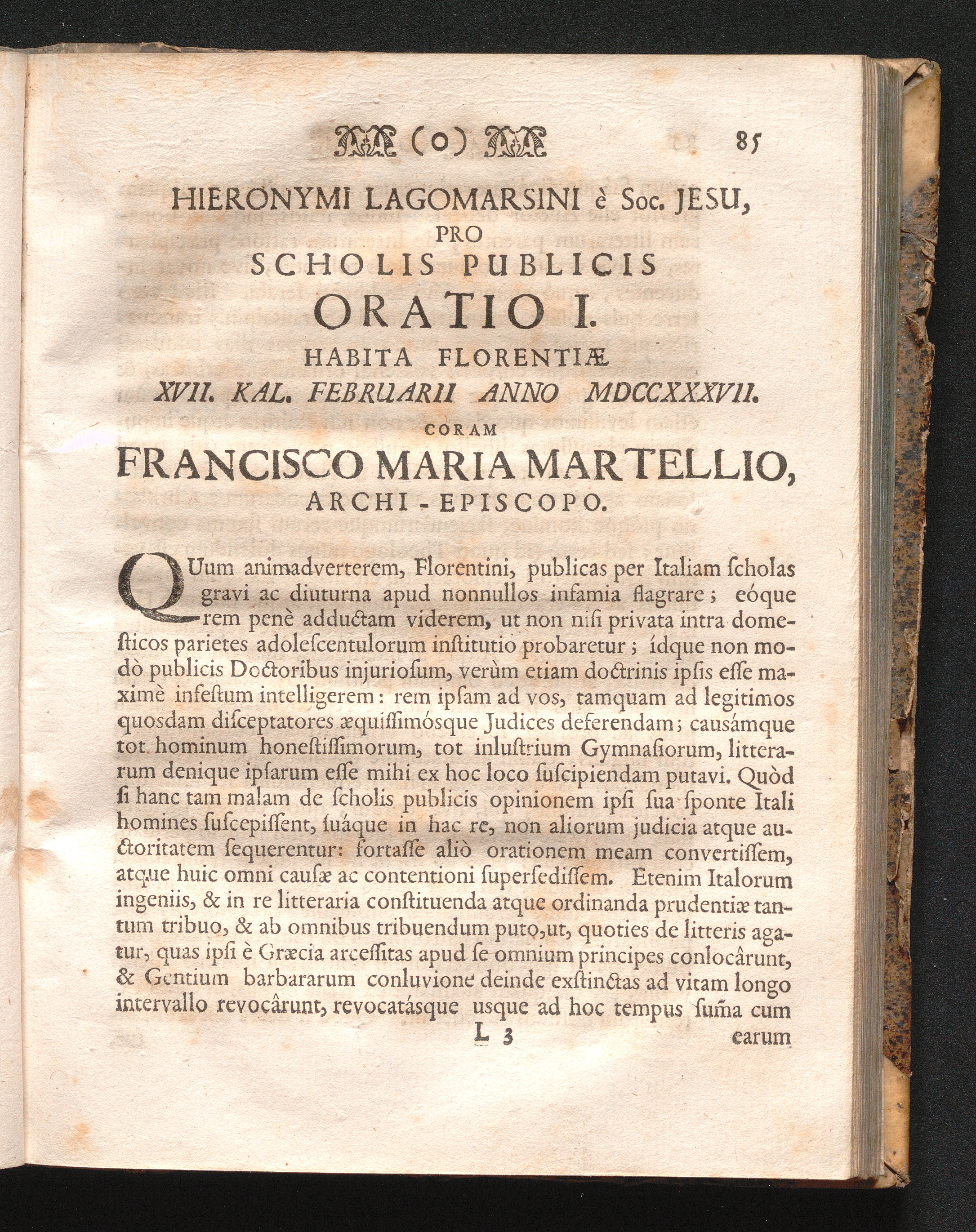 Hieronymi Lagomarsini Orationes Publice Dictæ Florentiæ : Ab Ipso Auctore, Studiorum Ibidem Præfecto, Et Jam Cum Speciali Per Provinciam Germaniæ Superioris Soc. Jesu Facultate Et Privilegio Cæsareo Typis Impressæ