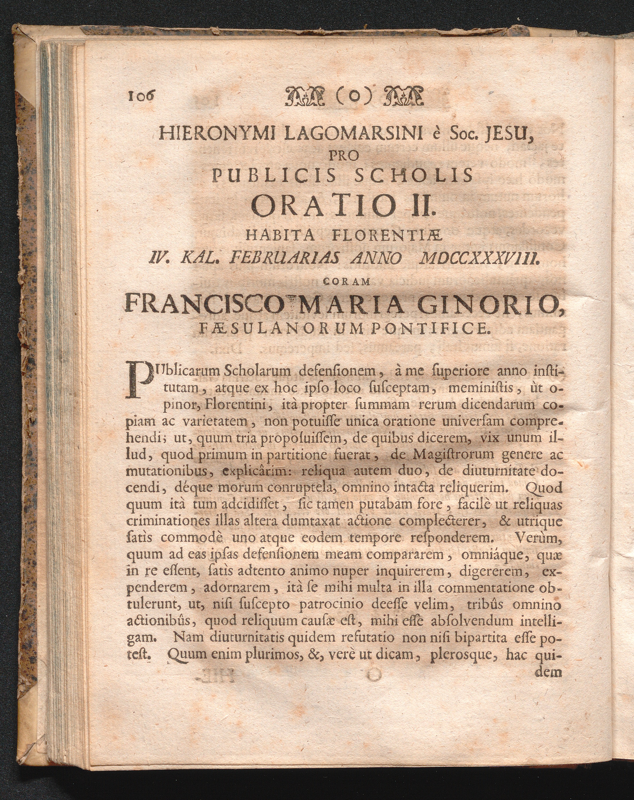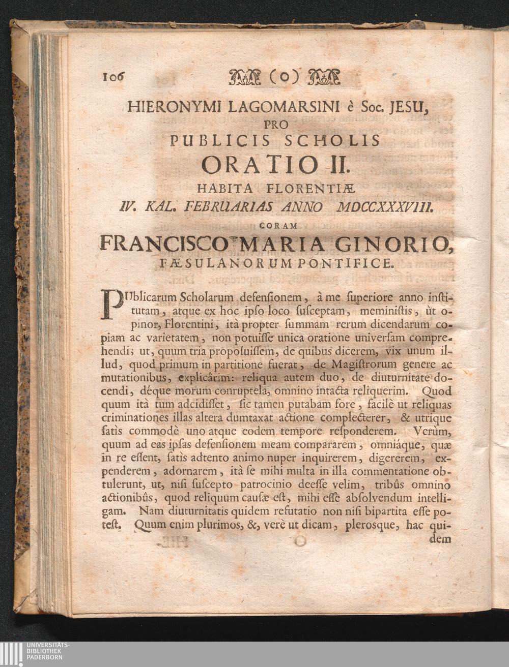 Hieronymi Lagomarsini Orationes Publice Dictæ Florentiæ : Ab Ipso Auctore, Studiorum Ibidem Præfecto, Et Jam Cum Speciali Per Provinciam Germaniæ Superioris Soc. Jesu Facultate Et Privilegio Cæsareo Typis Impressæ