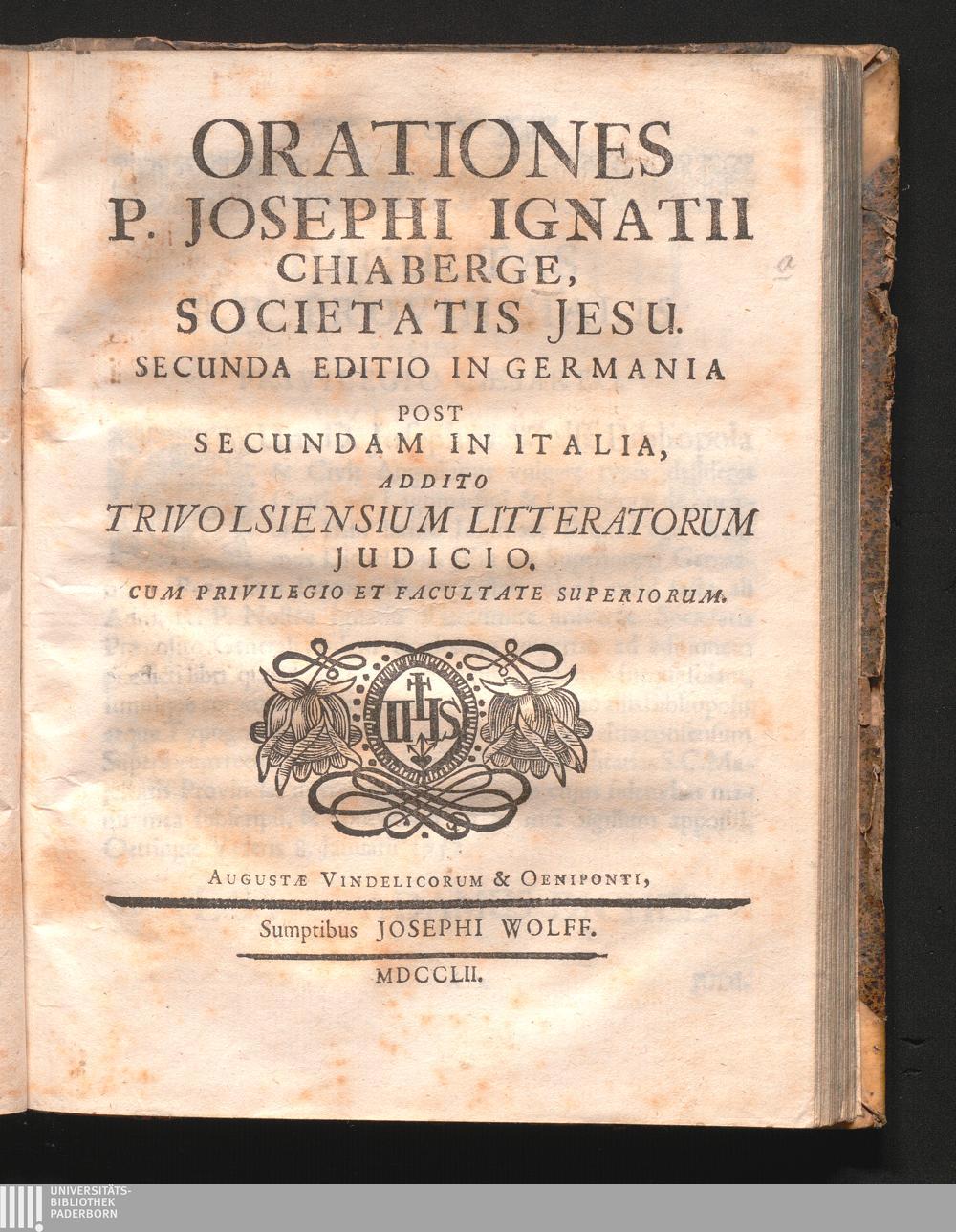 Orationes P. Josephi Ignatii Chiaberge, Societatis Jesu
