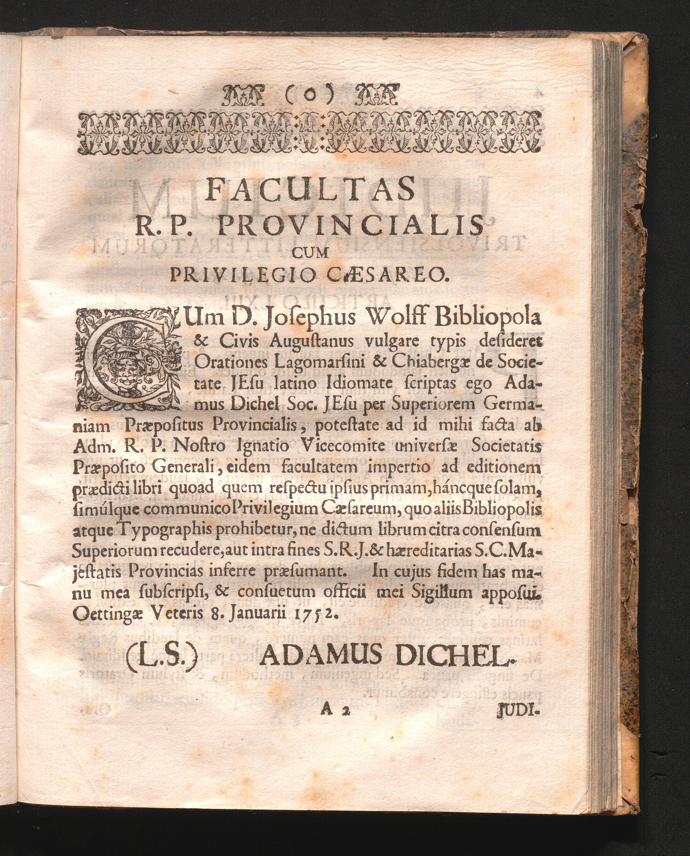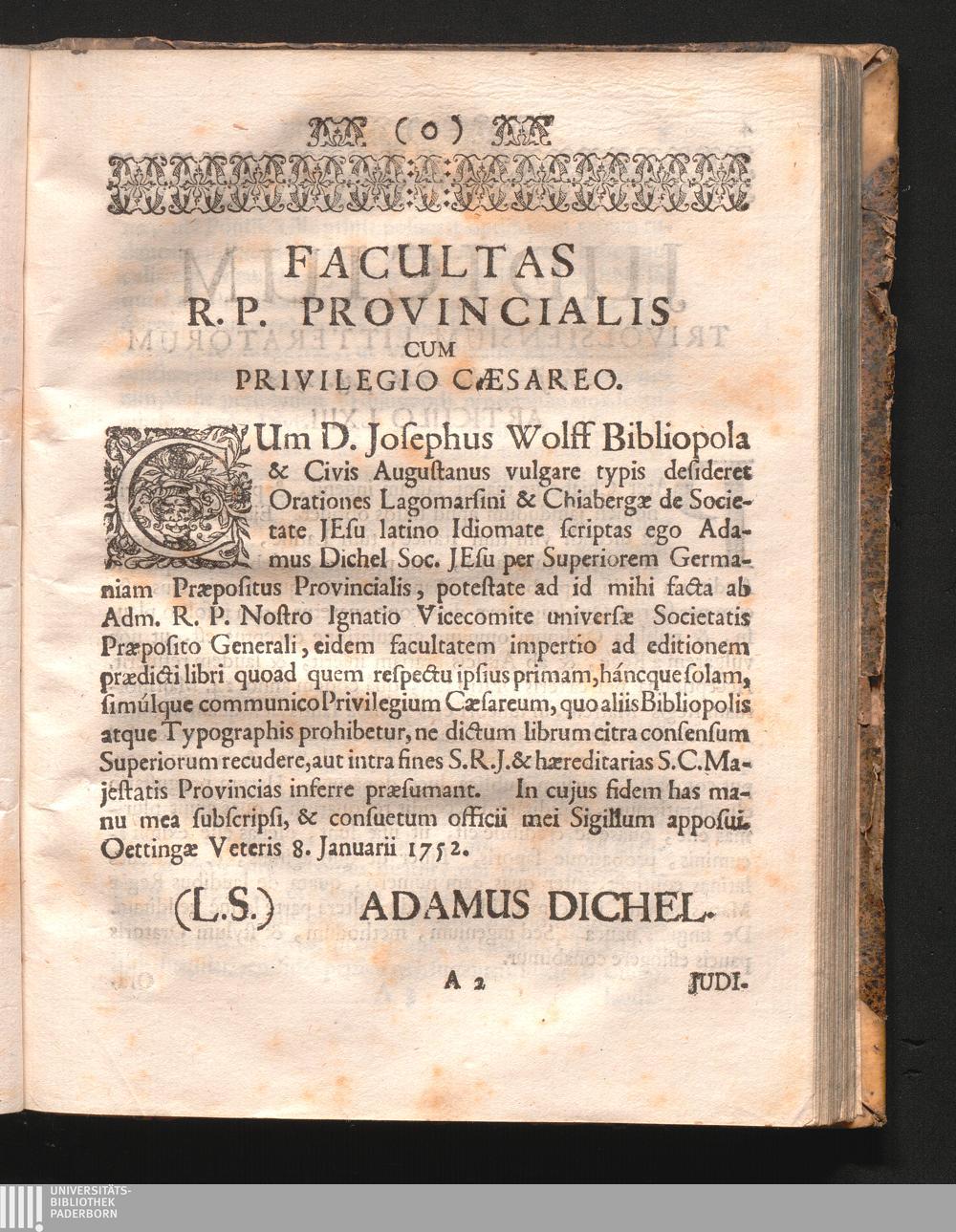 Facultas R.P. Provincialis Cum Privilegio Cæsareo.