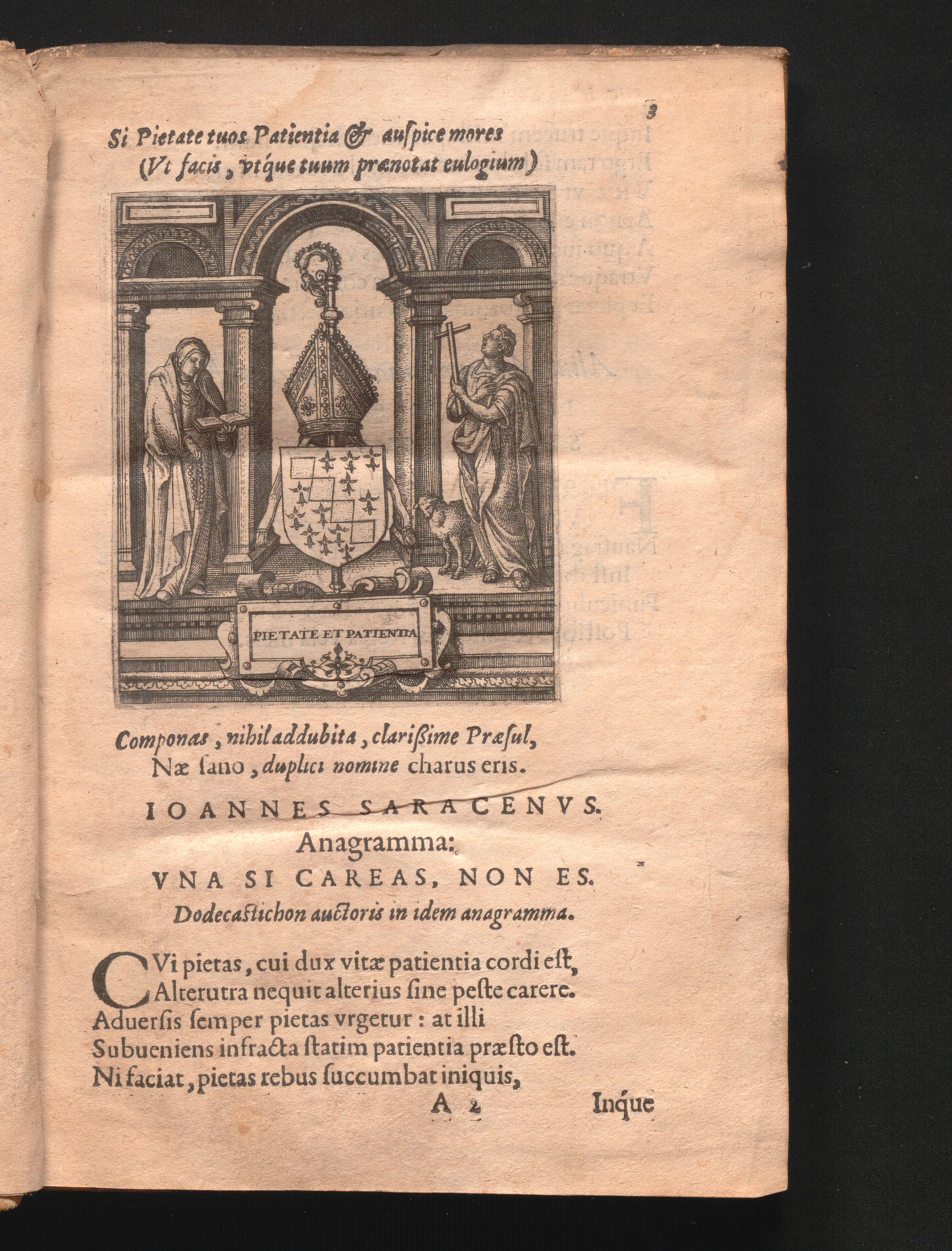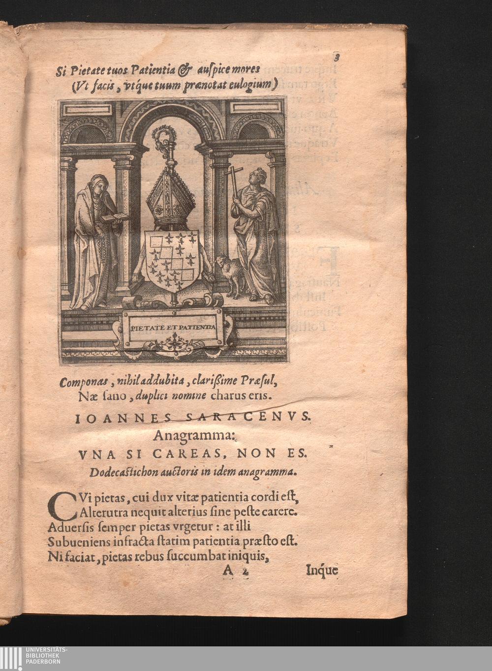 Ioannes Saracenvs. Anagramma: Vna Si Careas, Non Es.