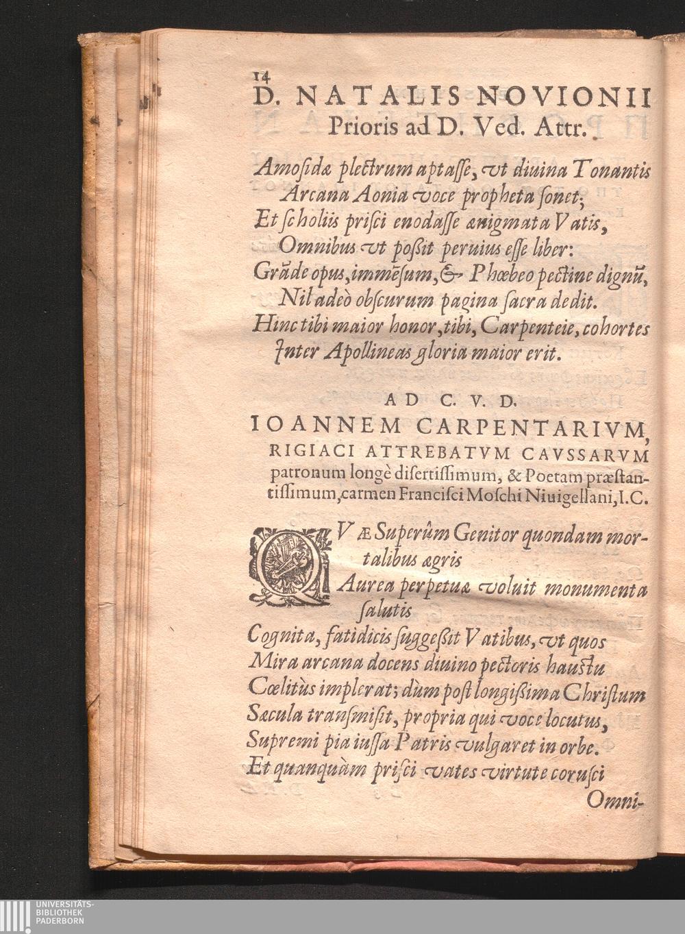 Ad C. V. D. Ioannem Carpentarivm, Rigiaci Attrebatvm Cavssarvm patronum longè disertissimum,[...]