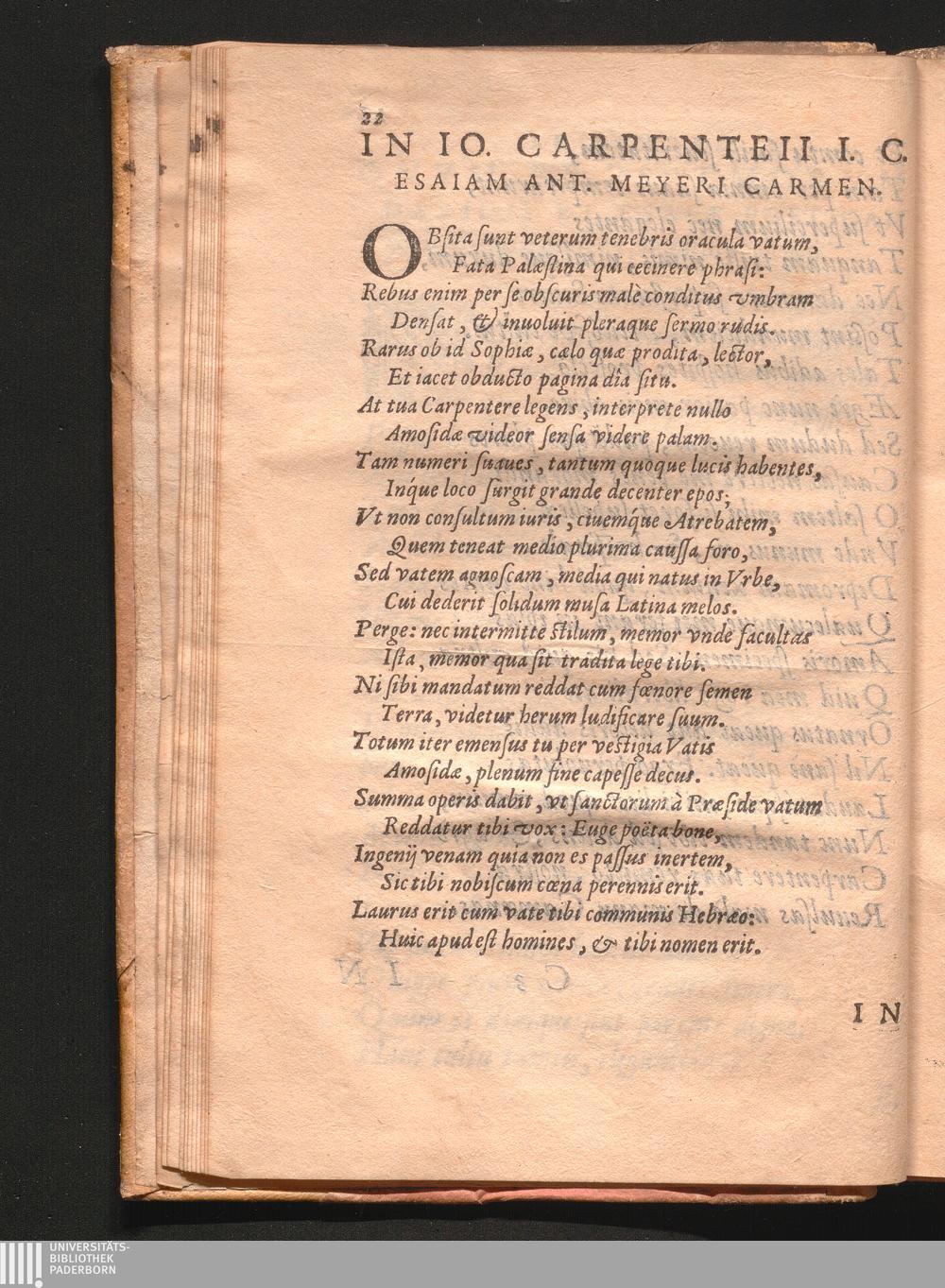 In Io. Carpenteii I. C. Esaiam Ant. Meyeri Carmen.