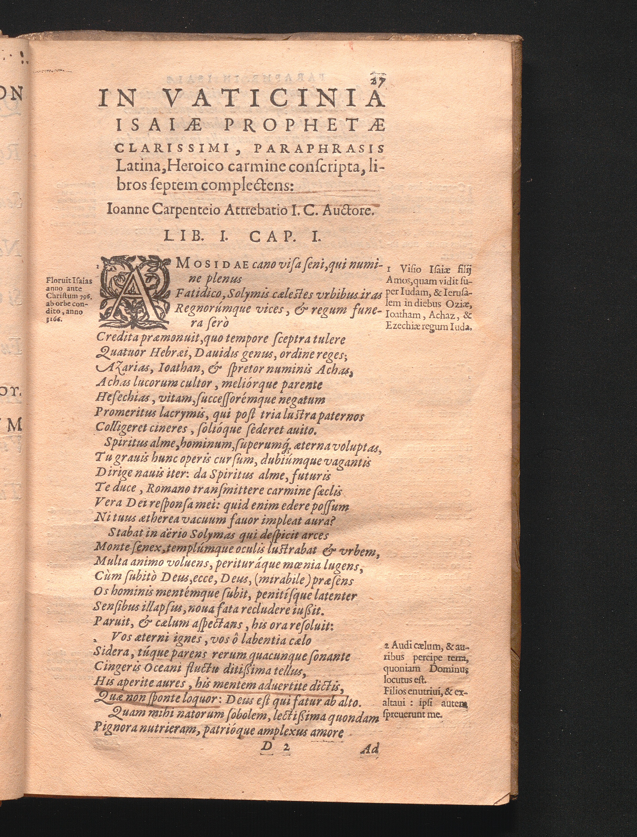 In Vaticinia Isaiae, Prophetae Clarissimi, Paraphrasis, Heroico carmine conscripta : libros septem complectens / Auctore Ioanne Carpenteio Ivrisconsvlto Atirebatio