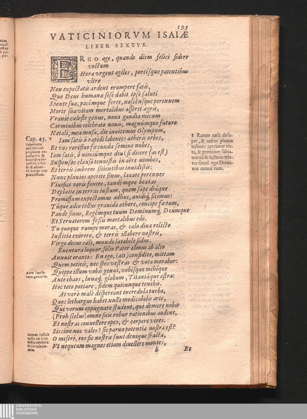 In Vaticinia Isaiæ Prophetæ Clarissimi, Paraphrasis Latina, Heroico carmine conscripta,[...]