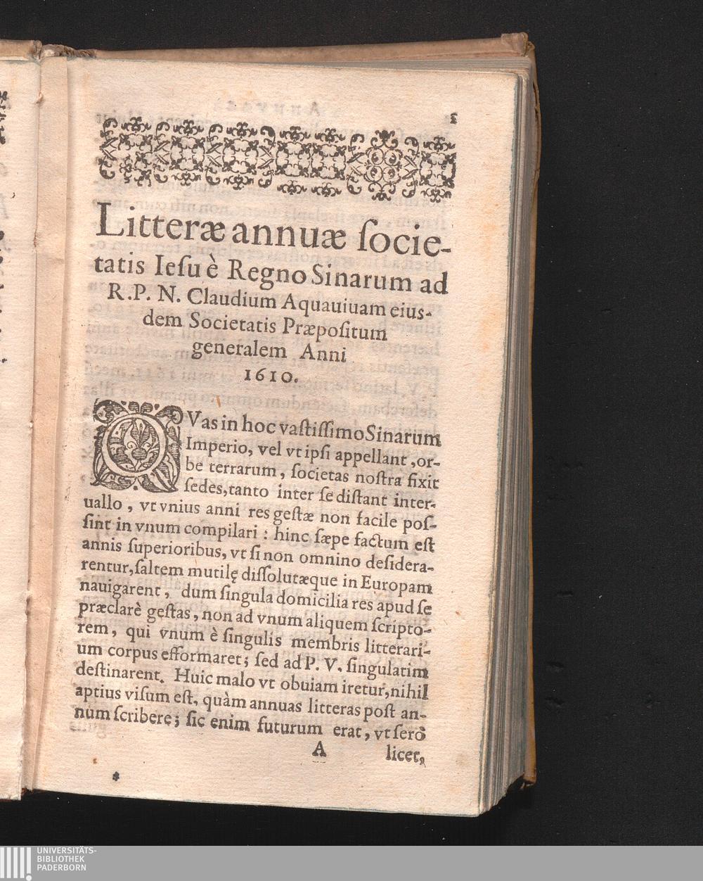Litteræ annuæ societatis Iesu è Regno Sinarum ad R. P. N. Claudium Aquauiuam eiusdem[...]