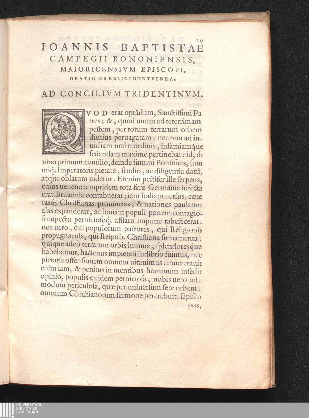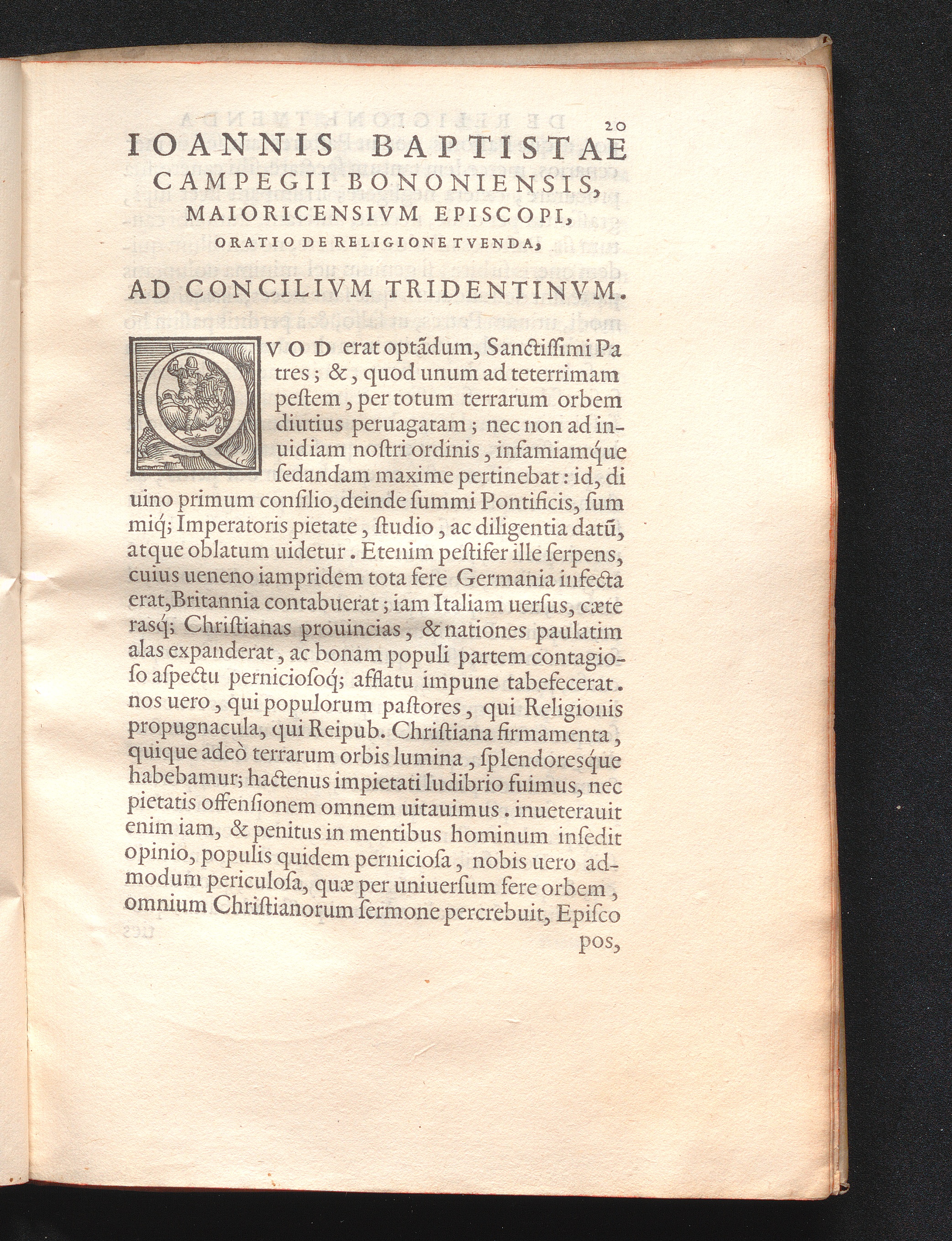 Orationes Dvae// Clariss. Et Ampliss.// Virorvm,// Altera Iacobi Sadoleti// S.R.E. Cardinalis, De Pace// Ad Imp. Carolvm V.// Altera Io. Baptistae// Campegii Bononiensis,// Maioricensium Episcopi,// De Tvenda Religione,// In Concilio Triden-//tino Habita.// / [Raphael Cyllenius edidit]