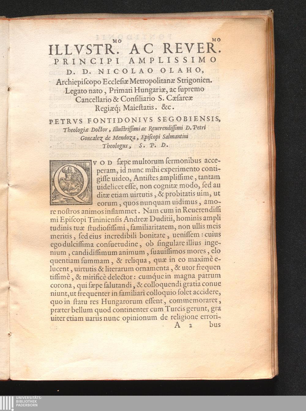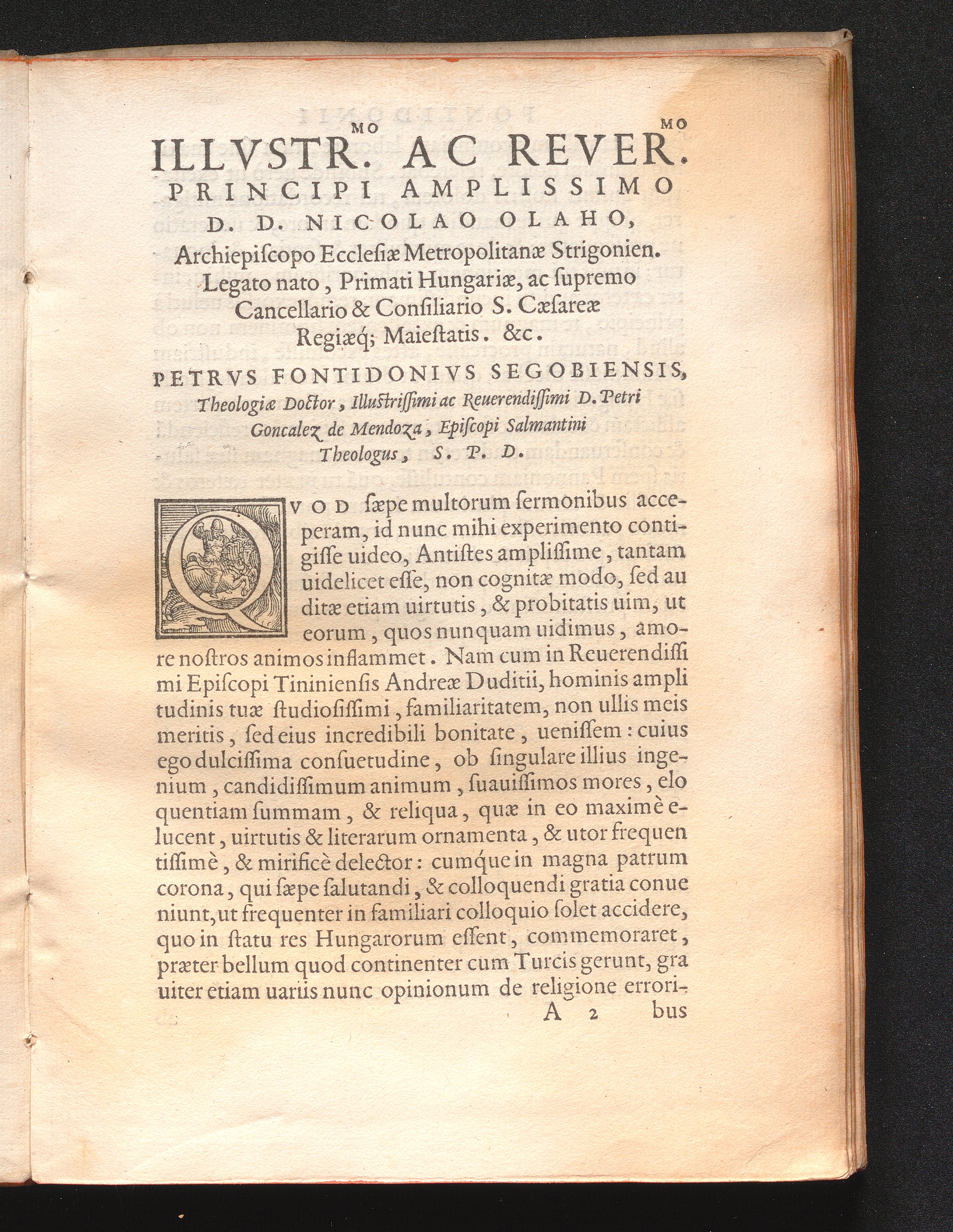 Illvstr.mo Ac Rever.mo Principi Amplissimo D. D. Nicolao Olaho, Archiepiscopo Ecclesiæ Metropolitanæ Strigonien. Legato nato, Primati Hungariæ, ac supremo Cancellario & Consiliario S. Cæsareæ Regiæq[ue] Maiestatis. &c.