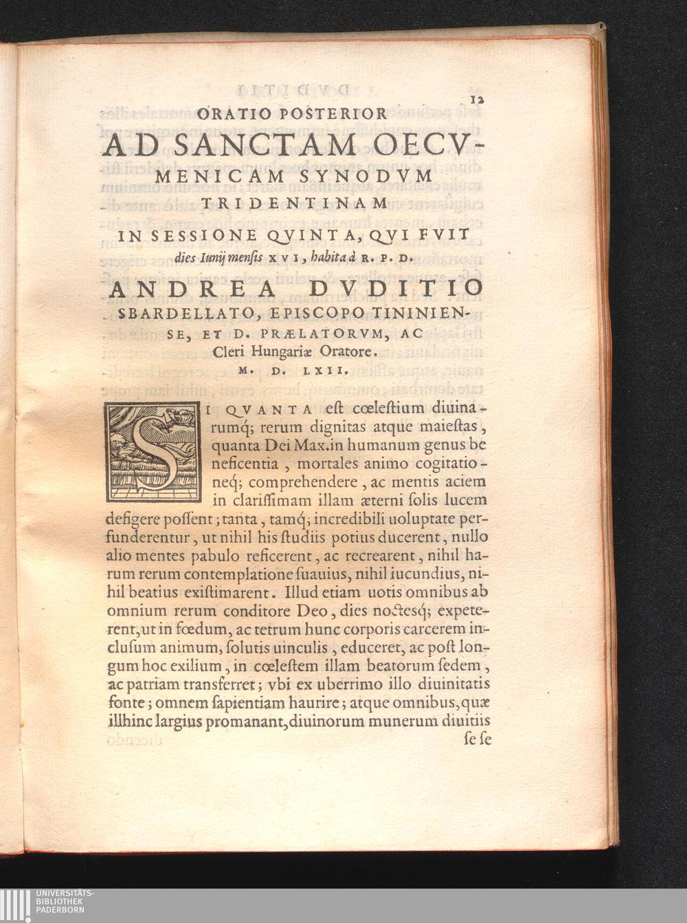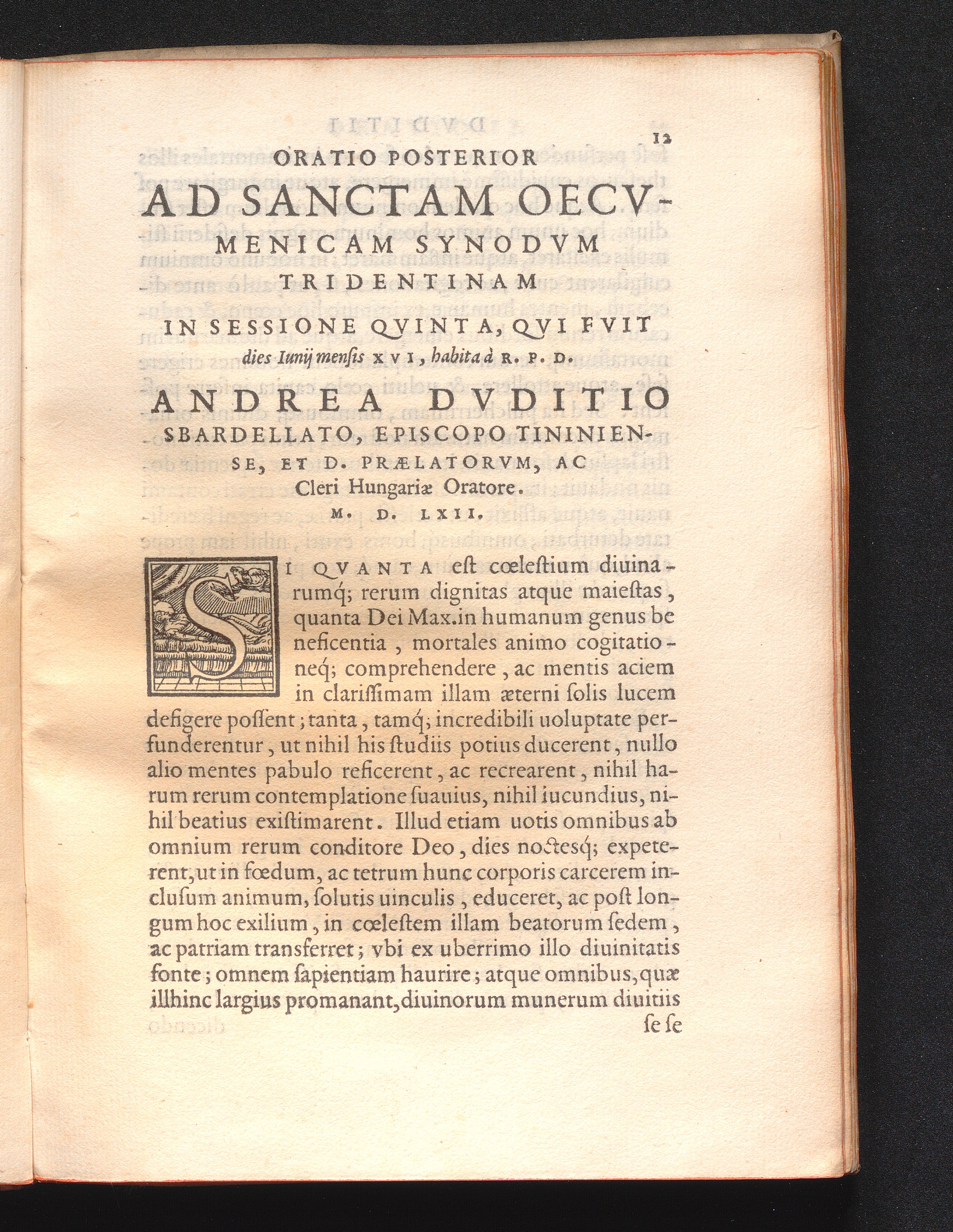 Oratio Posterior Ad Sanctam Oecvmenicam Synodvm Tridentinam In Sessione Qvinta, Qvi Fvit dies Iunij mensis XVI, habita à R. P. D. Andrea Dvditio Sbardellato, Episcopo Tininiense, Et D. Prælatorvm, Ac Cleri Hungariæ Oratore. M. D. LXII.