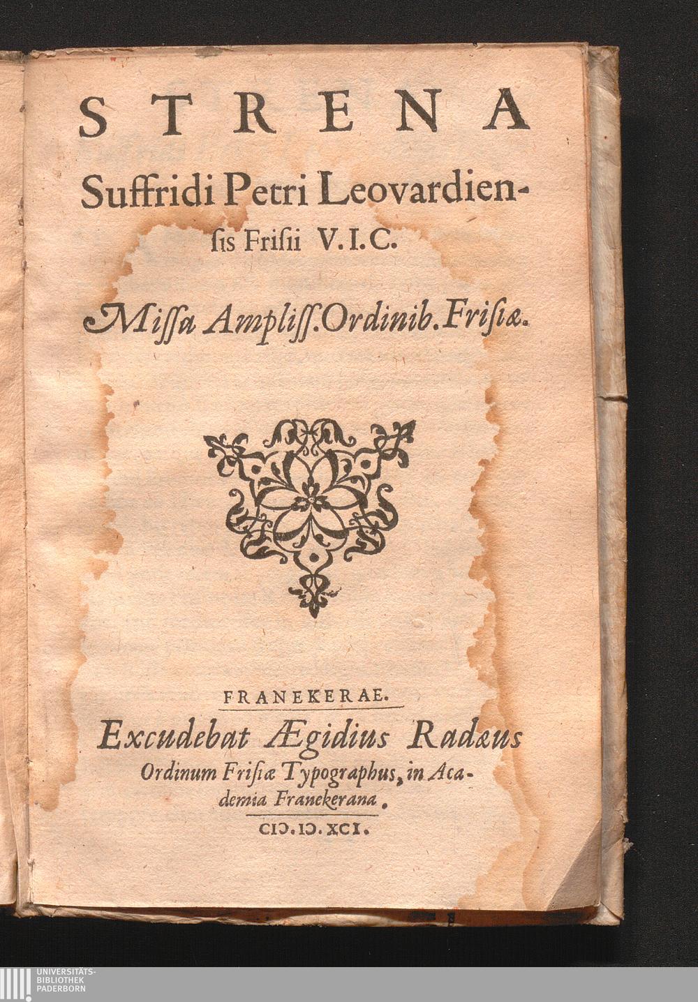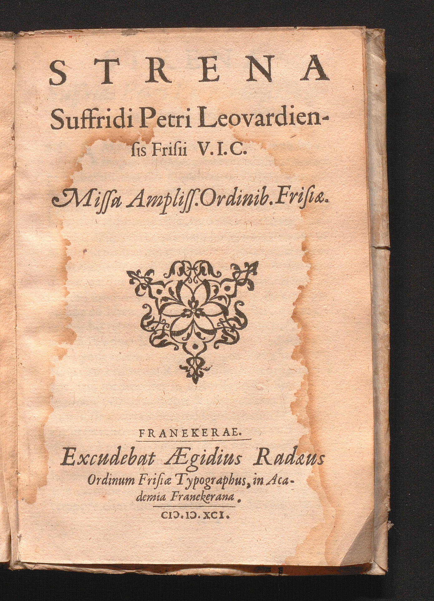 Strena Suffridi Petri Leovardie[n]sis Frisii I. V. C. missa Ampliss. Ordinibus Frisiæ.