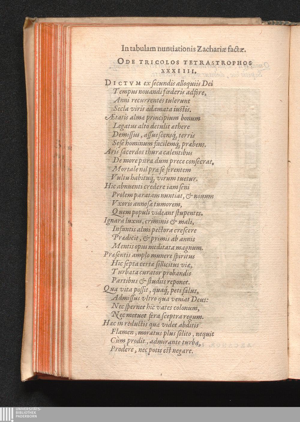 In tabulam nuntiationis Zachariæ factæ. Ode Tricolos Tetrastrophos XXXIIII.