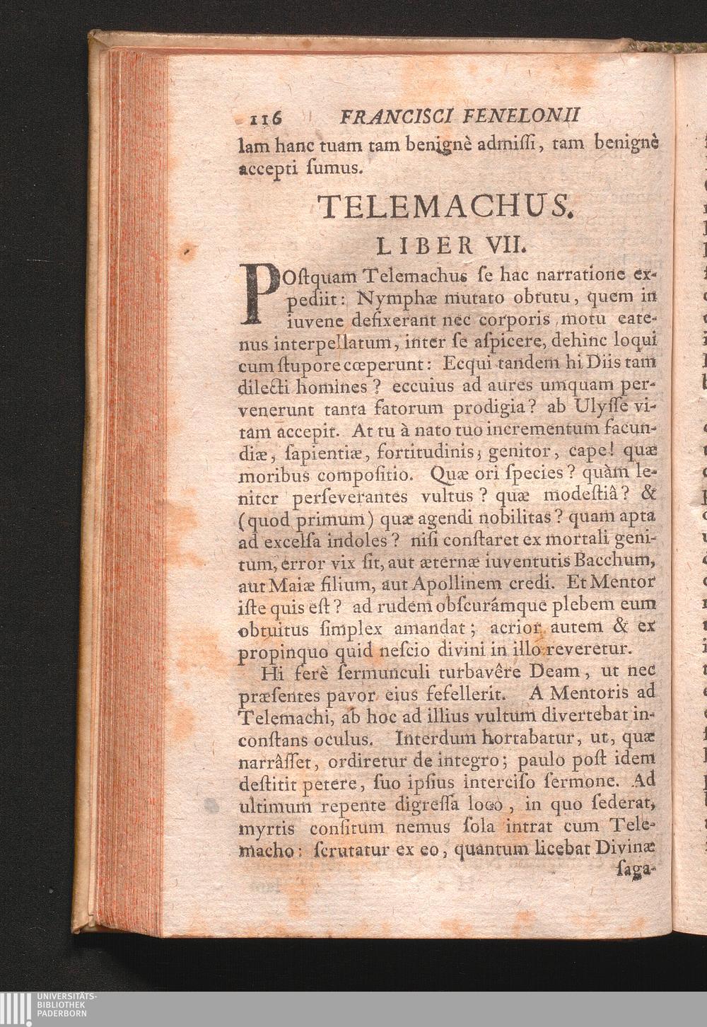 Reverendissimi Ac Illustrissimi Domini Domini Francisci Fenelonii Archi-Episcopi Cameracensis, Et Quondam Ab Humanioribus Litteris Serenissimi Ducis Burgundici Telemachus : Gallice Conscriptus, Ob Amoenissimam Tum Tradendæ, Tum Addiscendæ Christianæ Politices Methodum In Omnes Fere Europæ Linguas Transfusus / Nunc Nitidiore Latinitate et Indice satis copioso donatus à R.D.P. Gregorio Trautwein Can. Reg. ad Exemptas Insulas Wengenses Collegii S. Arch-Angeli Michaëlis Ulmæ Professo & Capitulari
