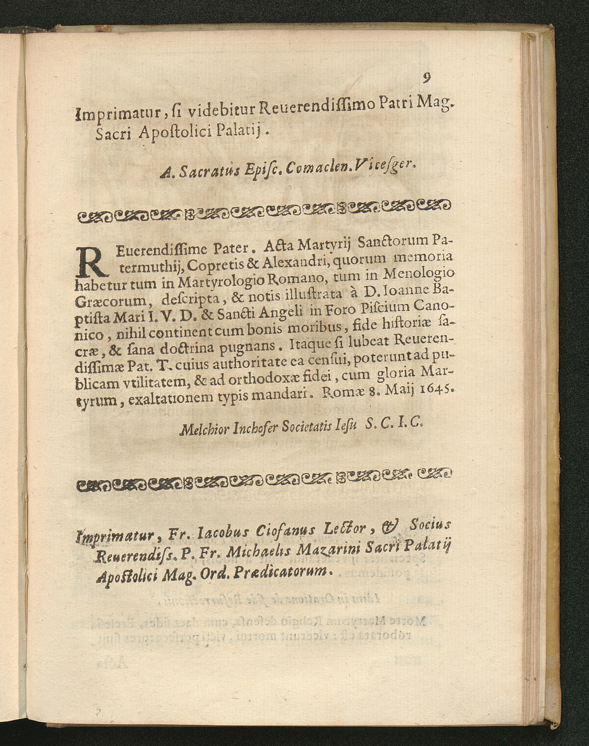 Acta Martyrii SS. Patermvthii, Copretis, Et Alexandri Militis Svb Ivliano Apostata : Quorum memoria olim in Collegiata Ecclesia Sancti Angeli in Foro Piscium celebrata, hodie in Oratorio S. Philipi Nerij in Vrbe viget / Nunquam hactenus in lucem edita & ad sensum vet. M. S. Cod. Basilicae Vaticanae notis etiam illustrata. Studio & Opera Ioannis Baptistae Mari Eiusdem Ecclesiae S. Angeli in Foro Piscium Canonici
