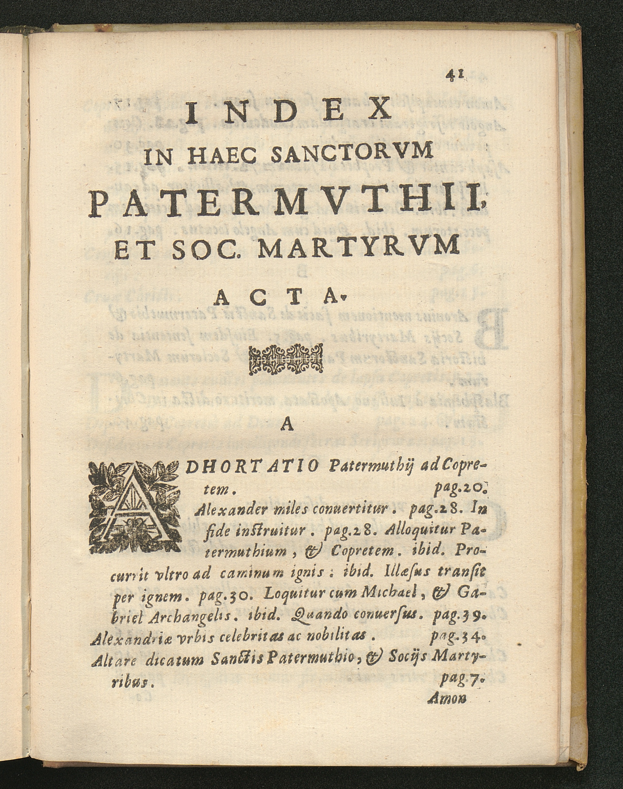 Acta Martyrii SS. Patermvthii, Copretis, Et Alexandri Militis Svb Ivliano Apostata : Quorum memoria olim in Collegiata Ecclesia Sancti Angeli in Foro Piscium celebrata, hodie in Oratorio S. Philipi Nerij in Vrbe viget / Nunquam hactenus in lucem edita & ad sensum vet. M. S. Cod. Basilicae Vaticanae notis etiam illustrata. Studio & Opera Ioannis Baptistae Mari Eiusdem Ecclesiae S. Angeli in Foro Piscium Canonici