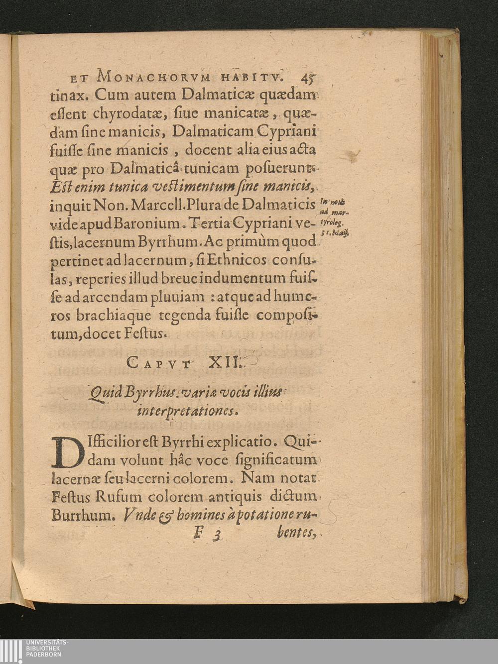 1 (1626) De Clerici, Monachi Vetere Institvto. Liber Primvs : Distinctus in tres Partes. In quibus, praeter veterem eorum habitu[m], multa quoque inserta de veste veterum laicorum. Breuiterq[ue] explicata singulorum origo, & antiquitas.