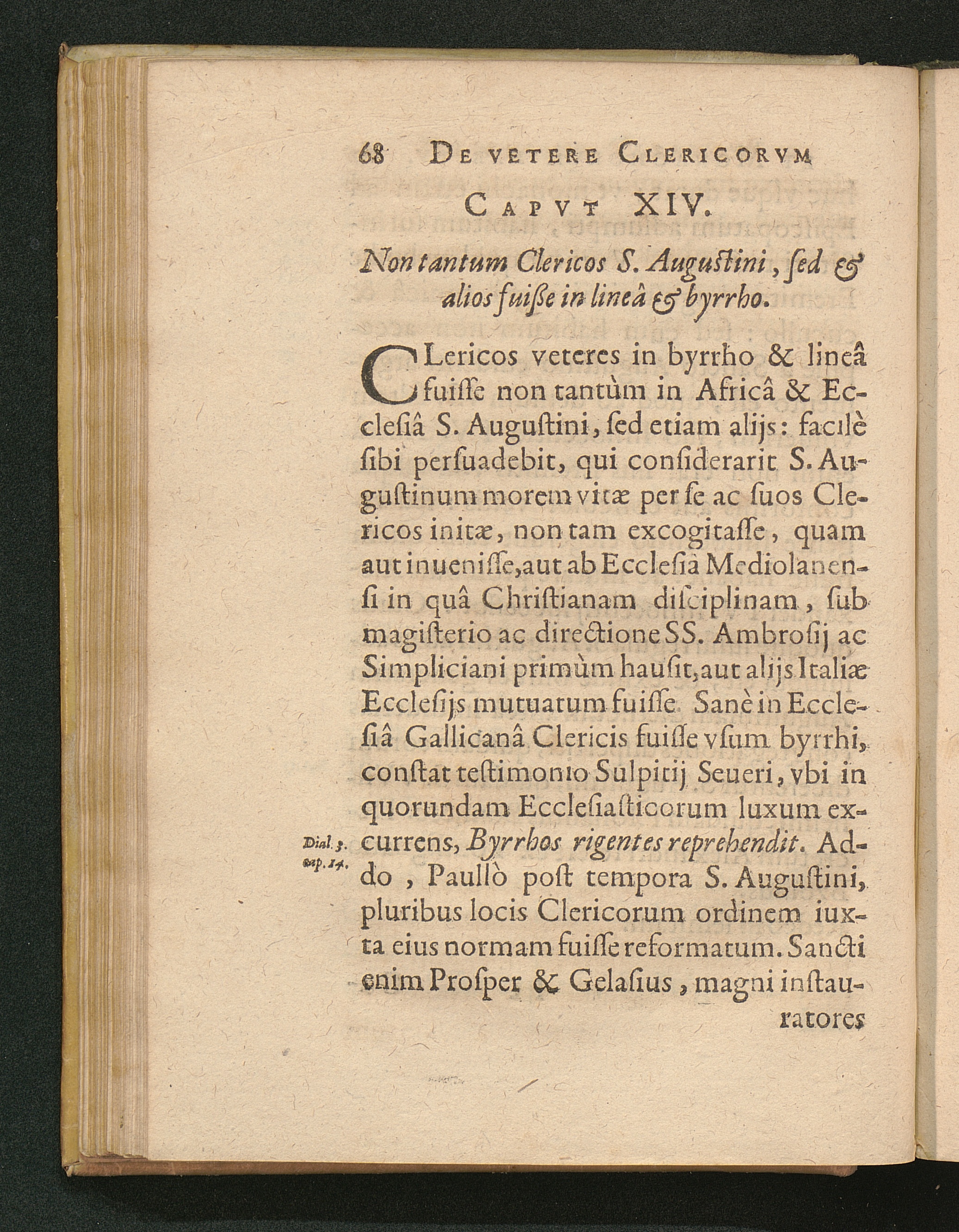 1 (1626) De Clerici, Monachi Vetere Institvto. Liber Primvs : Distinctus in tres Partes. In quibus, praeter veterem eorum habitu[m], multa quoque inserta de veste veterum laicorum. Breuiterq[ue] explicata singulorum origo, & antiquitas.