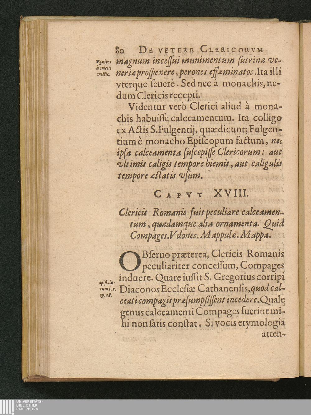 1 (1626) De Clerici, Monachi Vetere Institvto. Liber Primvs : Distinctus in tres Partes. In quibus, praeter veterem eorum habitu[m], multa quoque inserta de veste veterum laicorum. Breuiterq[ue] explicata singulorum origo, & antiquitas.