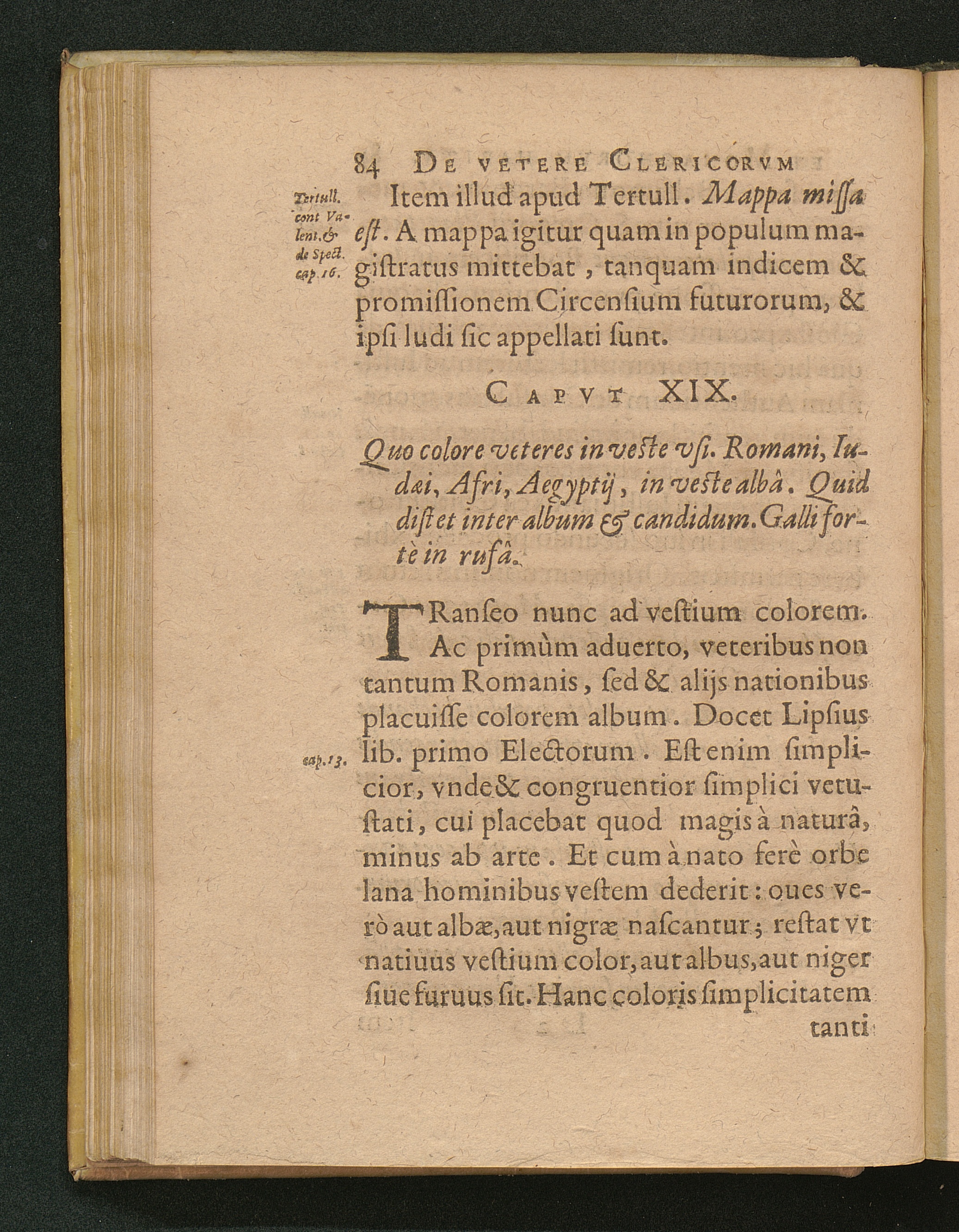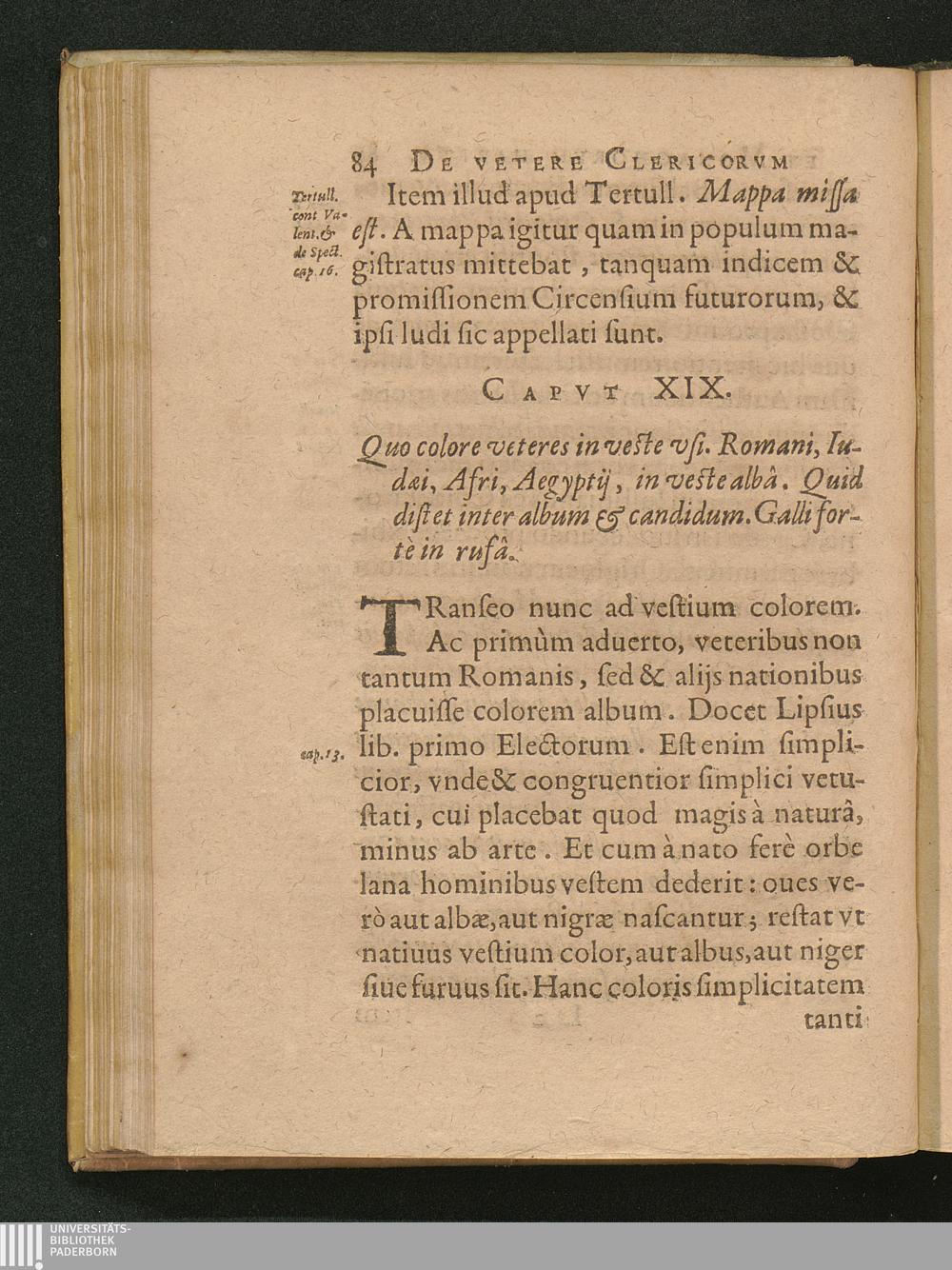 1 (1626) De Clerici, Monachi Vetere Institvto. Liber Primvs : Distinctus in tres Partes. In quibus, praeter veterem eorum habitu[m], multa quoque inserta de veste veterum laicorum. Breuiterq[ue] explicata singulorum origo, & antiquitas.