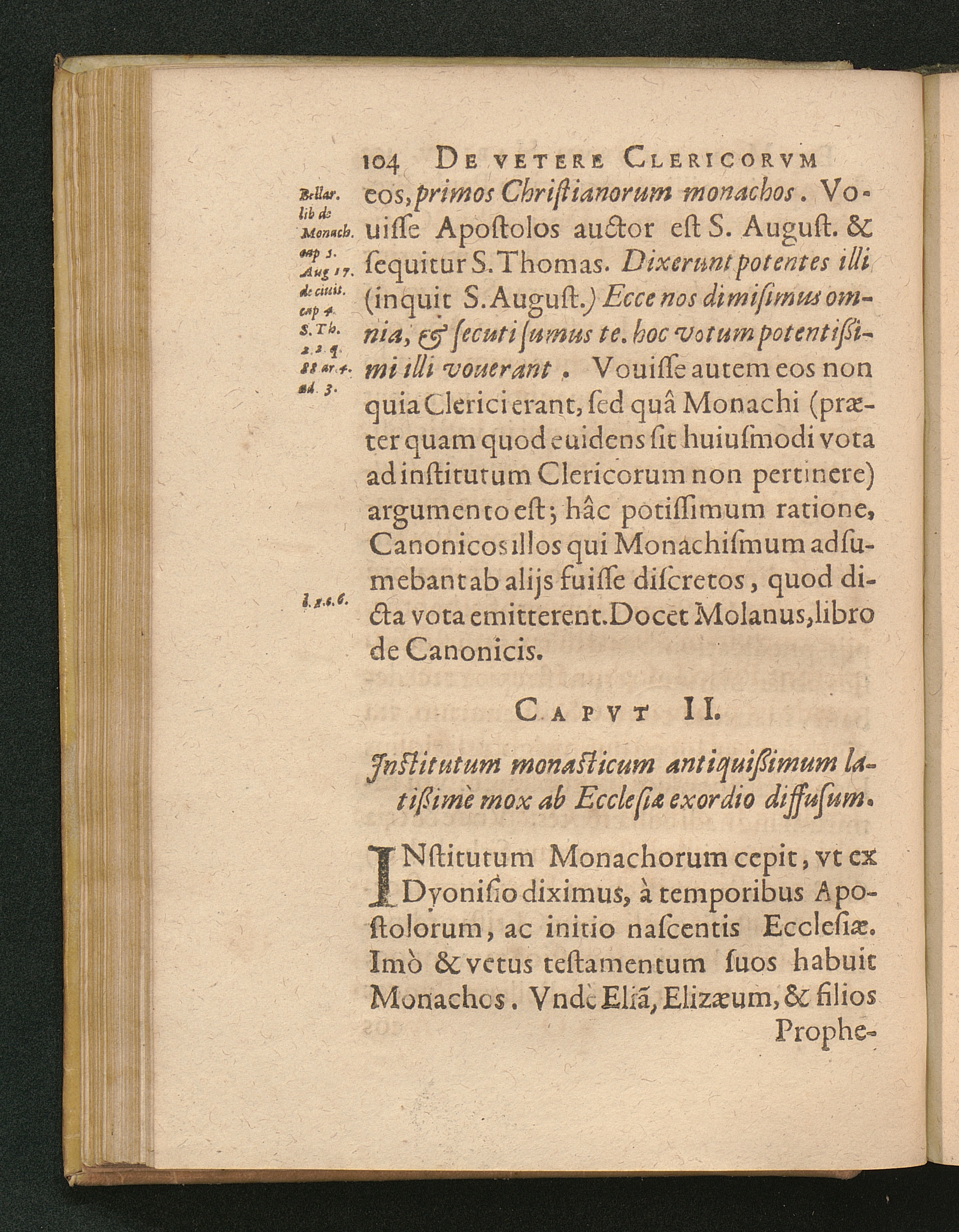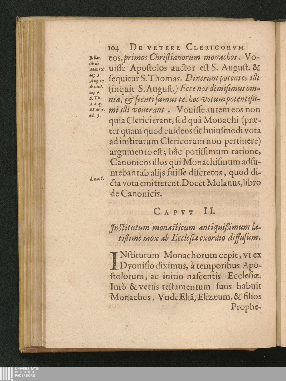 1 (1626) De Clerici, Monachi Vetere Institvto. Liber Primvs : Distinctus in tres Partes. In quibus, praeter veterem eorum habitu[m], multa quoque inserta de veste veterum laicorum. Breuiterq[ue] explicata singulorum origo, & antiquitas.