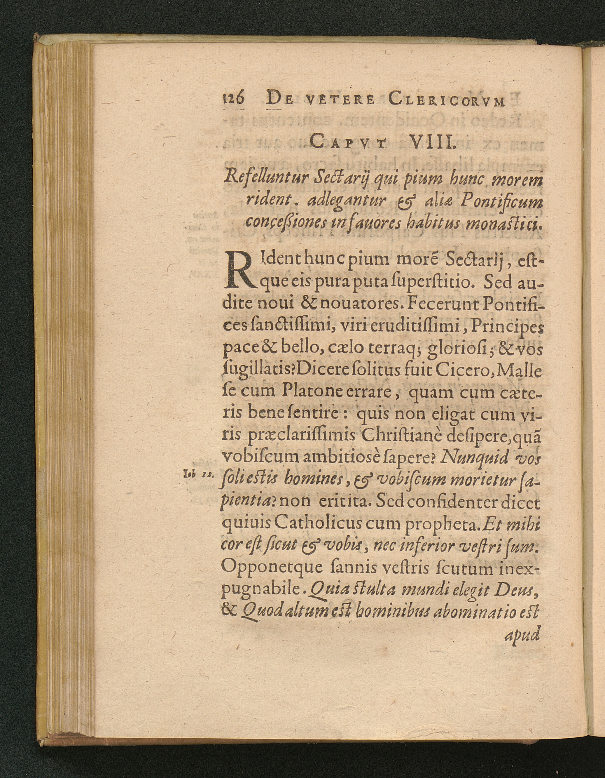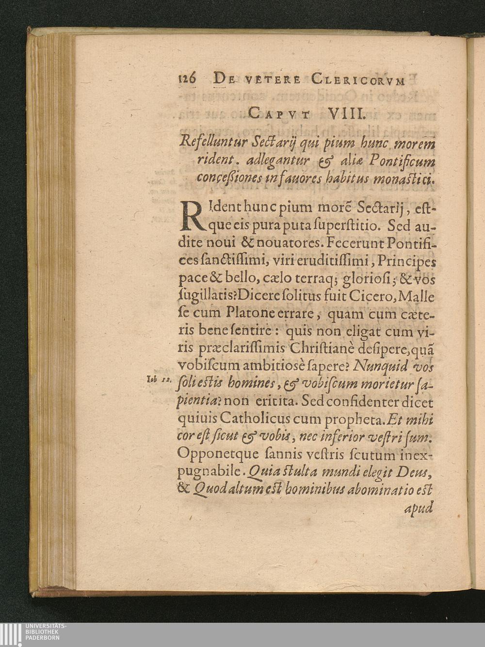 1 (1626) De Clerici, Monachi Vetere Institvto. Liber Primvs : Distinctus in tres Partes. In quibus, praeter veterem eorum habitu[m], multa quoque inserta de veste veterum laicorum. Breuiterq[ue] explicata singulorum origo, & antiquitas.