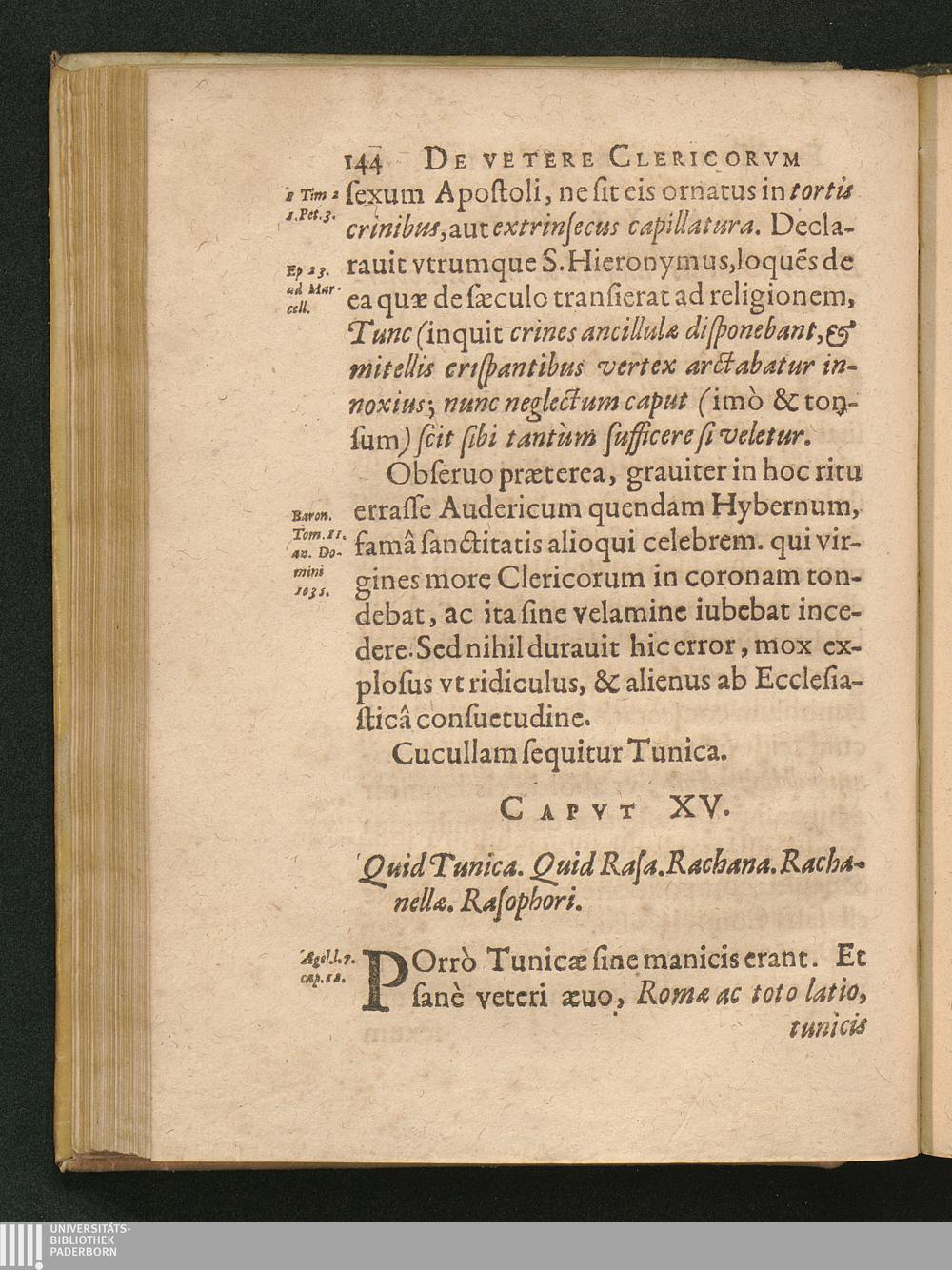 1 (1626) De Clerici, Monachi Vetere Institvto. Liber Primvs : Distinctus in tres Partes. In quibus, praeter veterem eorum habitu[m], multa quoque inserta de veste veterum laicorum. Breuiterq[ue] explicata singulorum origo, & antiquitas.