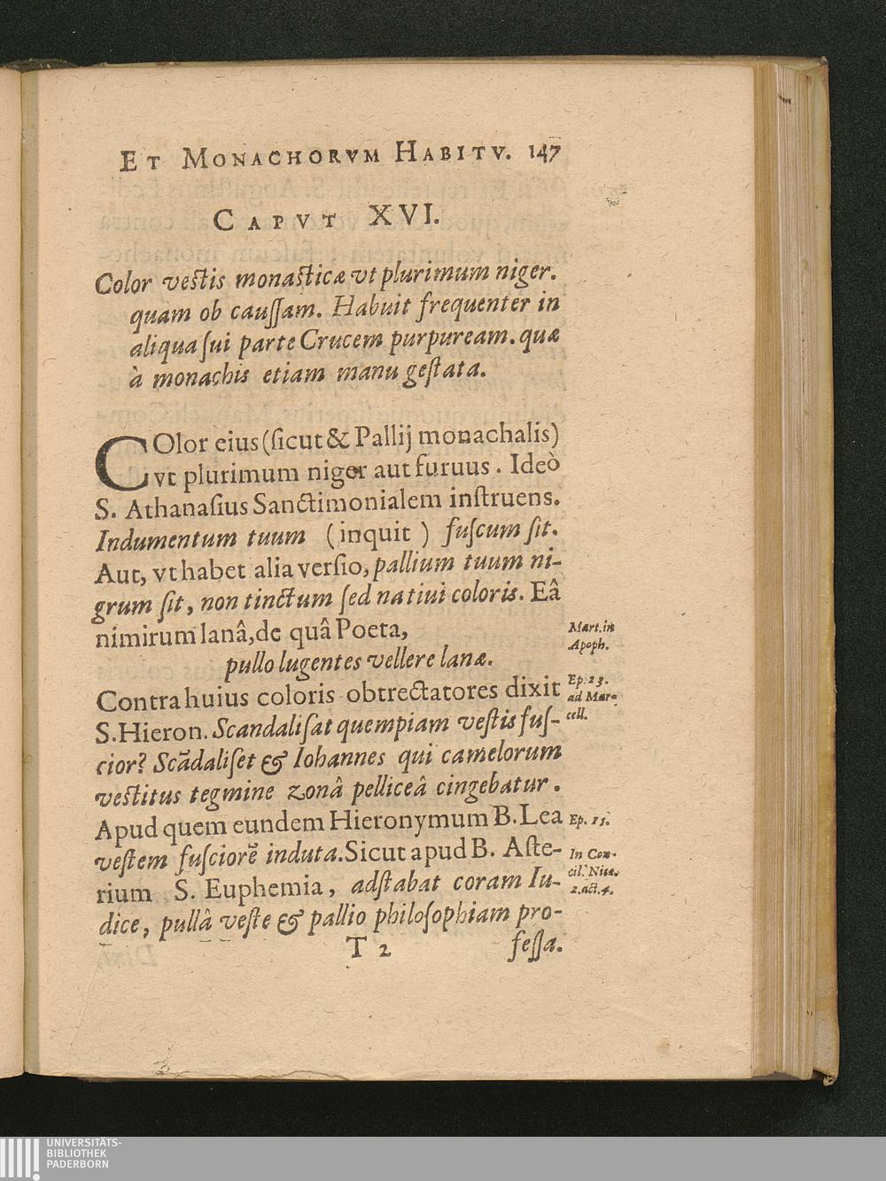 1 (1626) De Clerici, Monachi Vetere Institvto. Liber Primvs : Distinctus in tres Partes. In quibus, praeter veterem eorum habitu[m], multa quoque inserta de veste veterum laicorum. Breuiterq[ue] explicata singulorum origo, & antiquitas.