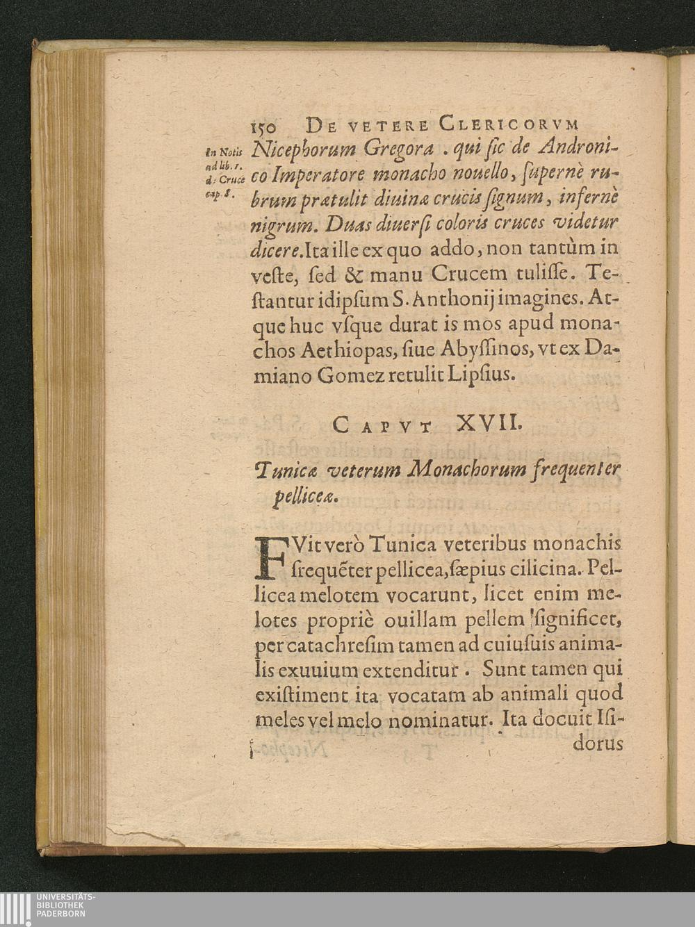 1 (1626) De Clerici, Monachi Vetere Institvto. Liber Primvs : Distinctus in tres Partes. In quibus, praeter veterem eorum habitu[m], multa quoque inserta de veste veterum laicorum. Breuiterq[ue] explicata singulorum origo, & antiquitas.