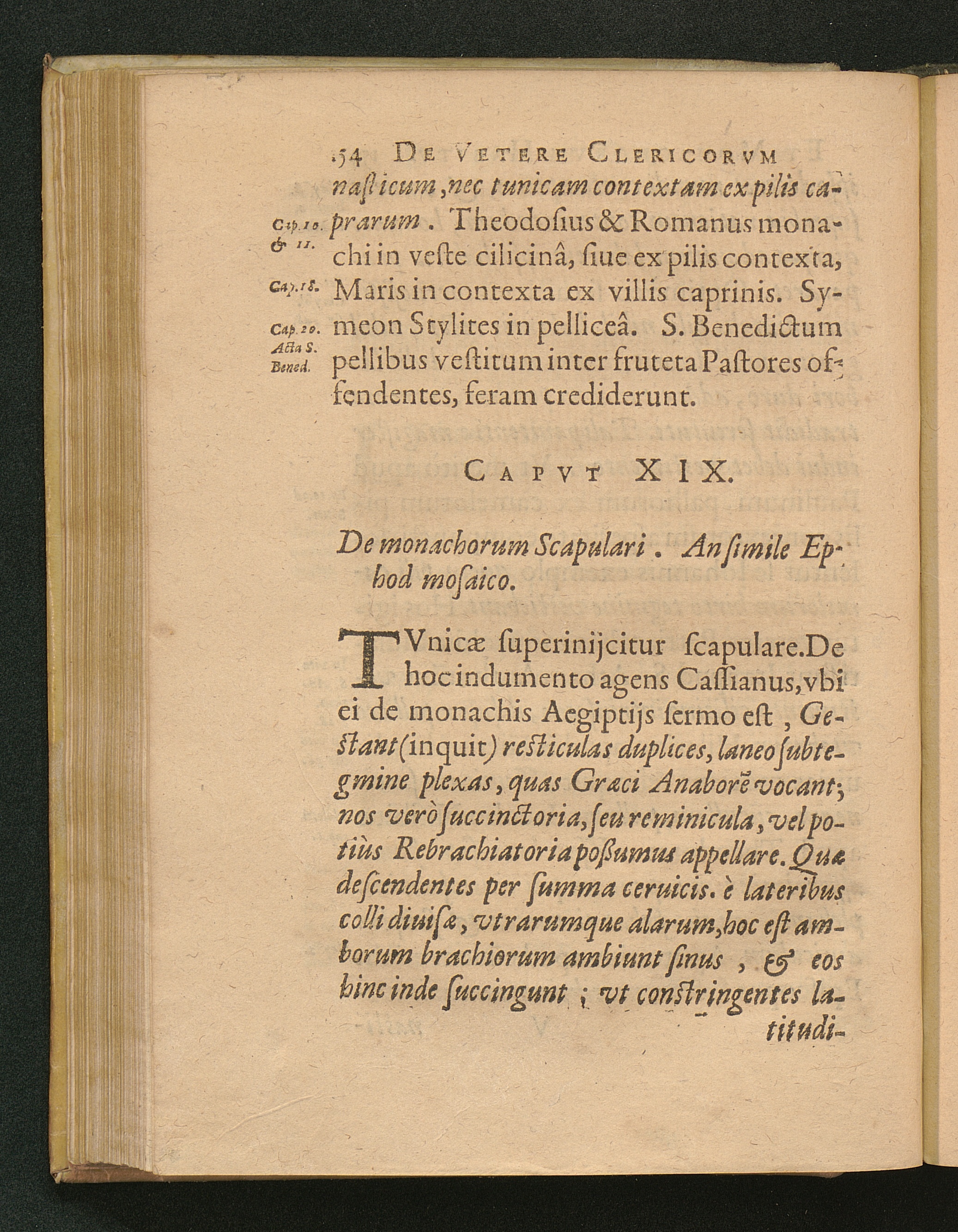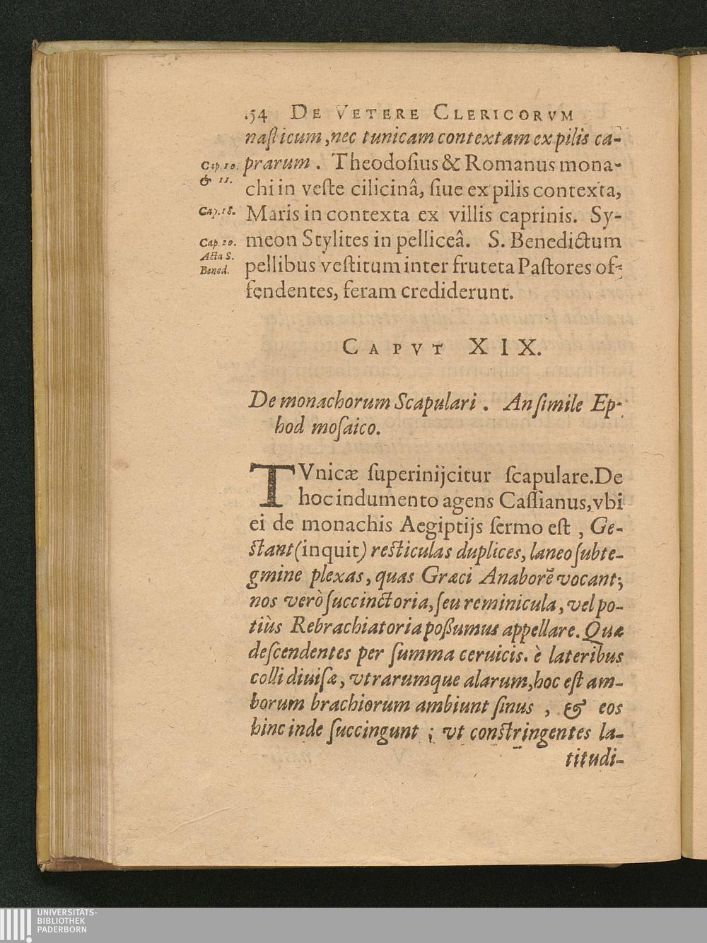 1 (1626) De Clerici, Monachi Vetere Institvto. Liber Primvs : Distinctus in tres Partes. In quibus, praeter veterem eorum habitu[m], multa quoque inserta de veste veterum laicorum. Breuiterq[ue] explicata singulorum origo, & antiquitas.