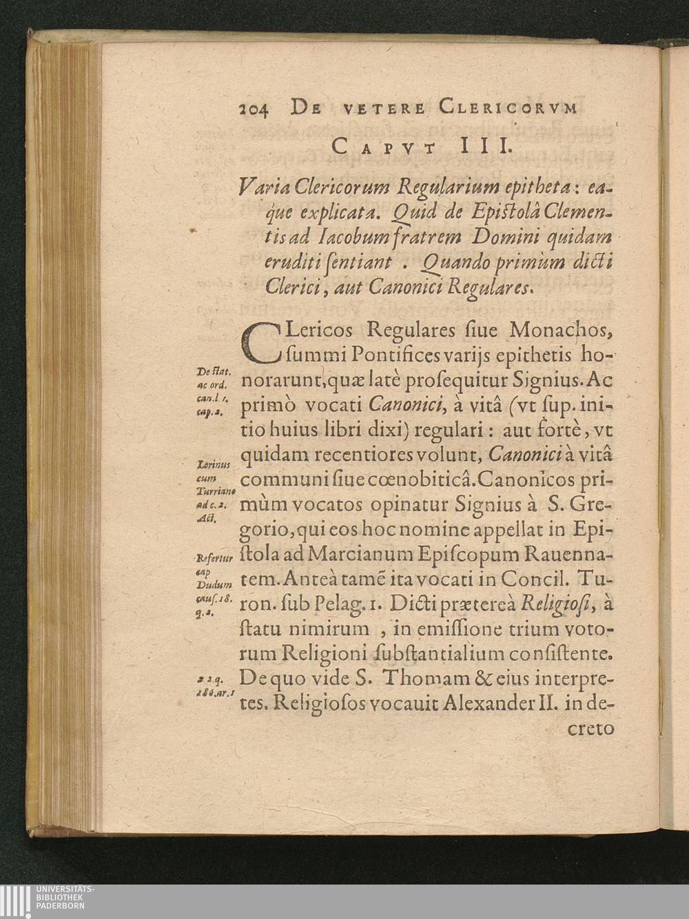 1 (1626) De Clerici, Monachi Vetere Institvto. Liber Primvs : Distinctus in tres Partes. In quibus, praeter veterem eorum habitu[m], multa quoque inserta de veste veterum laicorum. Breuiterq[ue] explicata singulorum origo, & antiquitas.