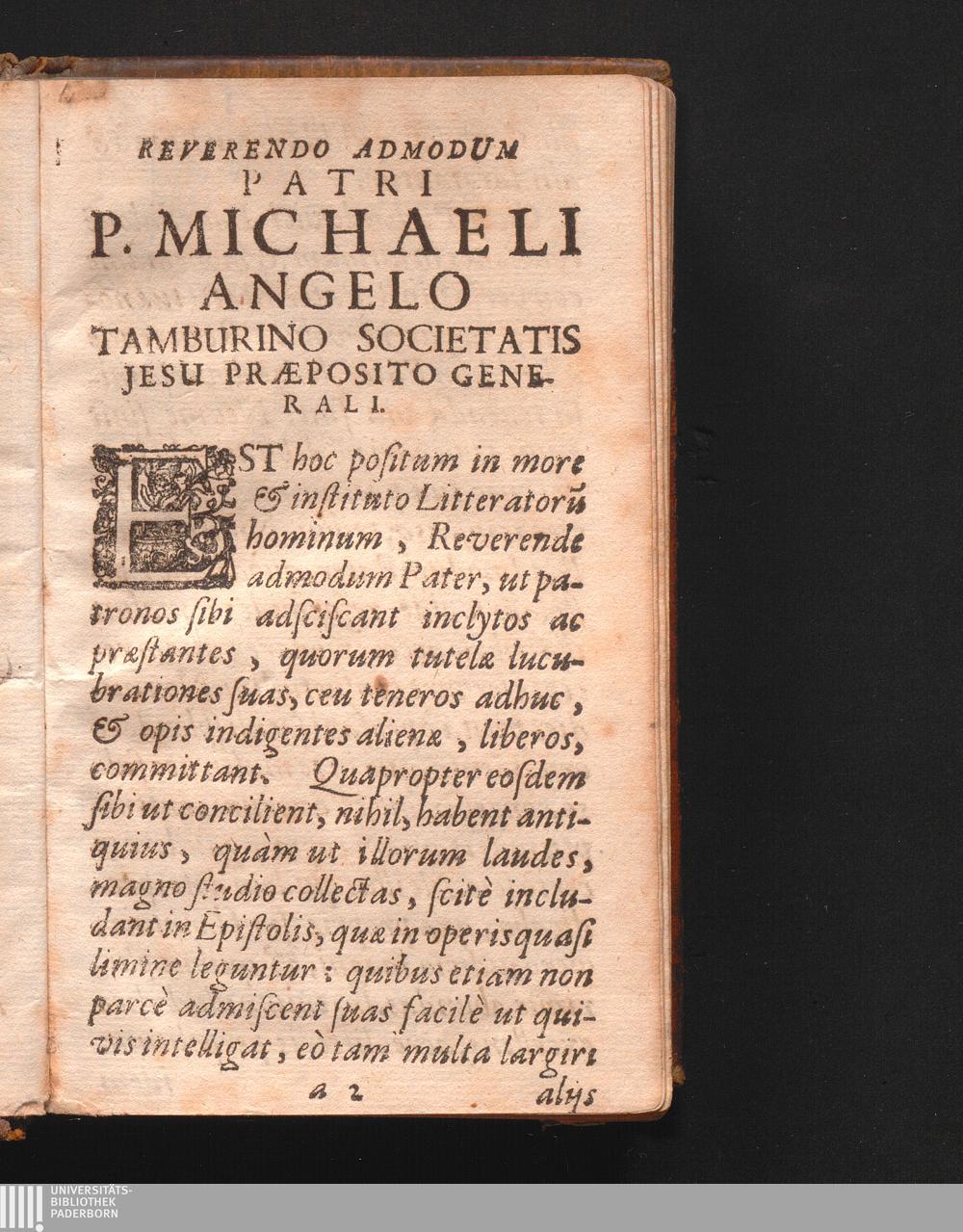Reverendo Admodum Patri P. Michaeli Angelo Tamburino Societatis Jesu Præposito Generali.