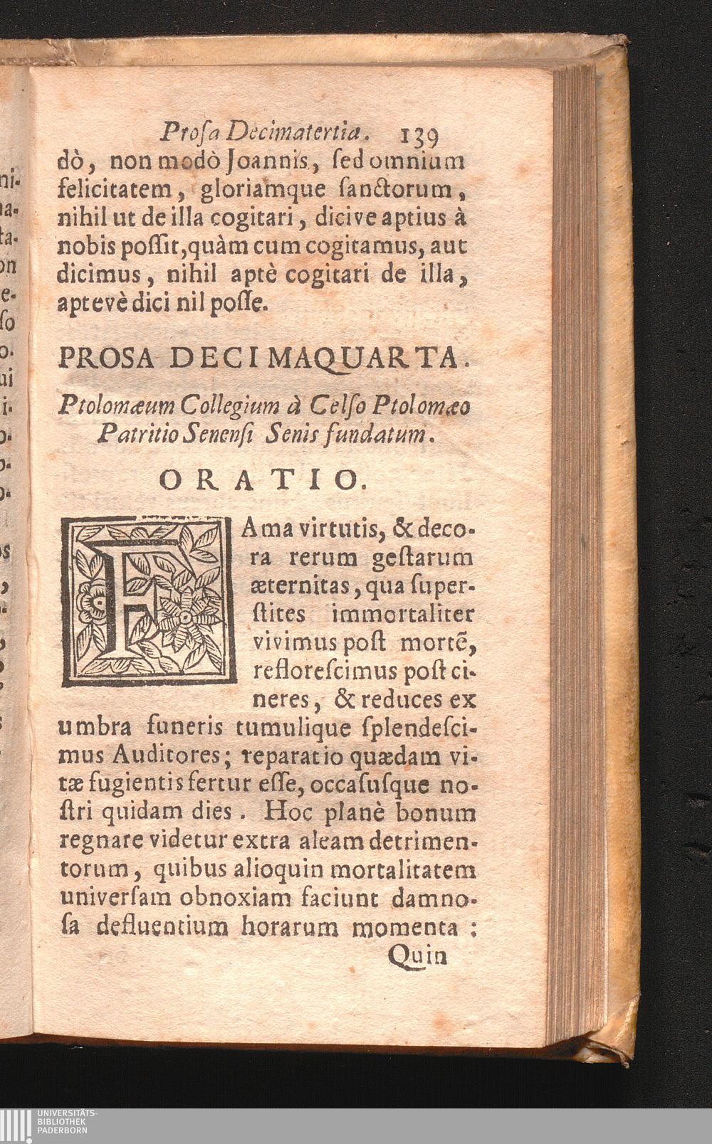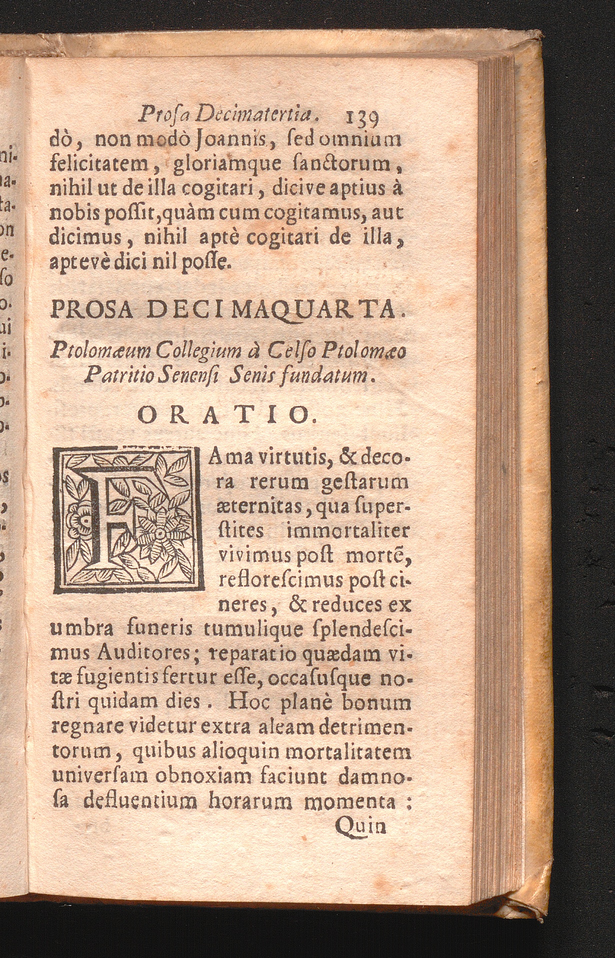 Prosa XIV. Ptolomæum Collegiu[m] à Colse Ptolomæo Patritio Senensi Senis.