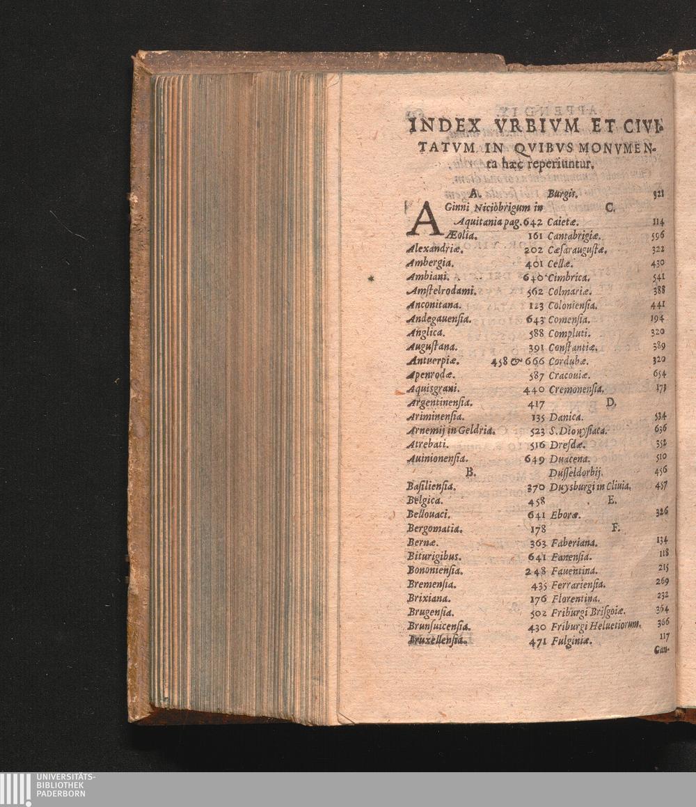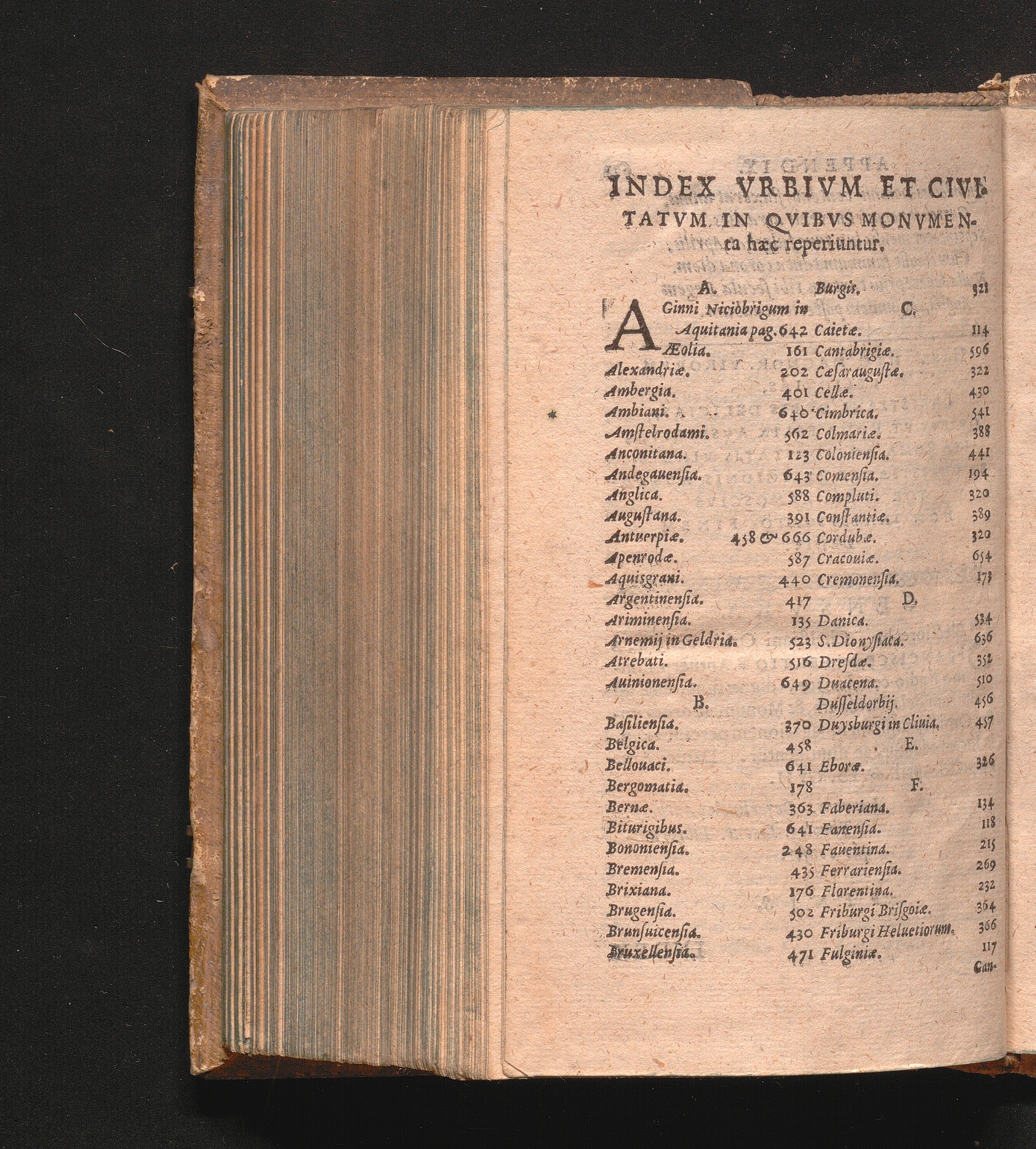 Index Vrbivm Et Civitatvm In Qvibvs Monvmenta hæ reperiuntur.