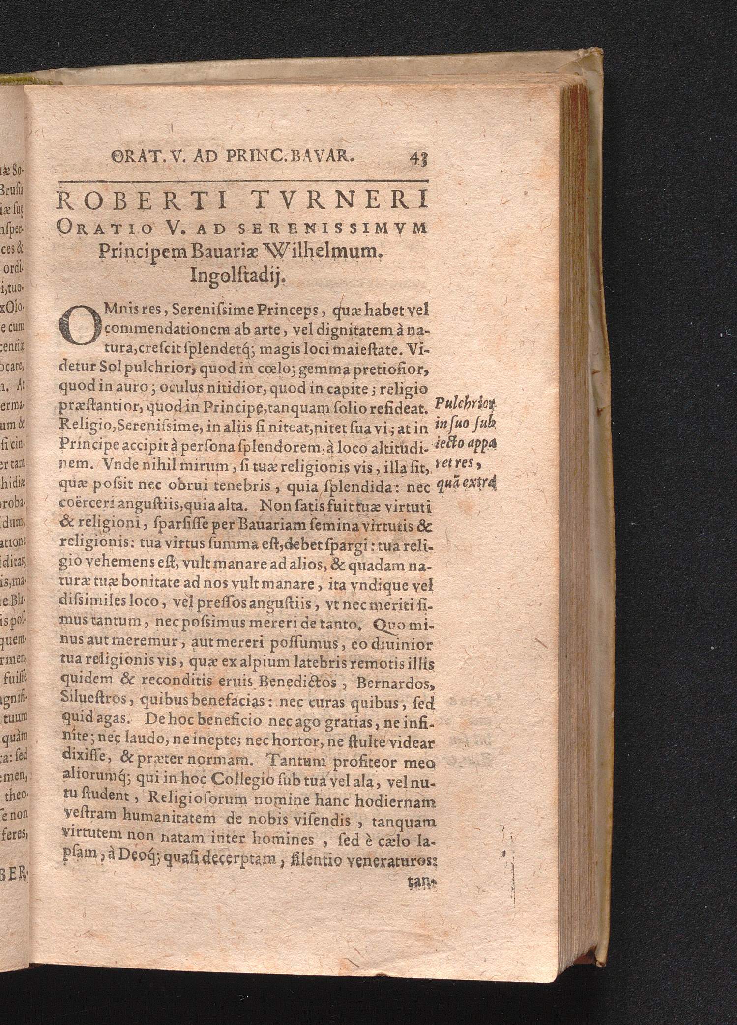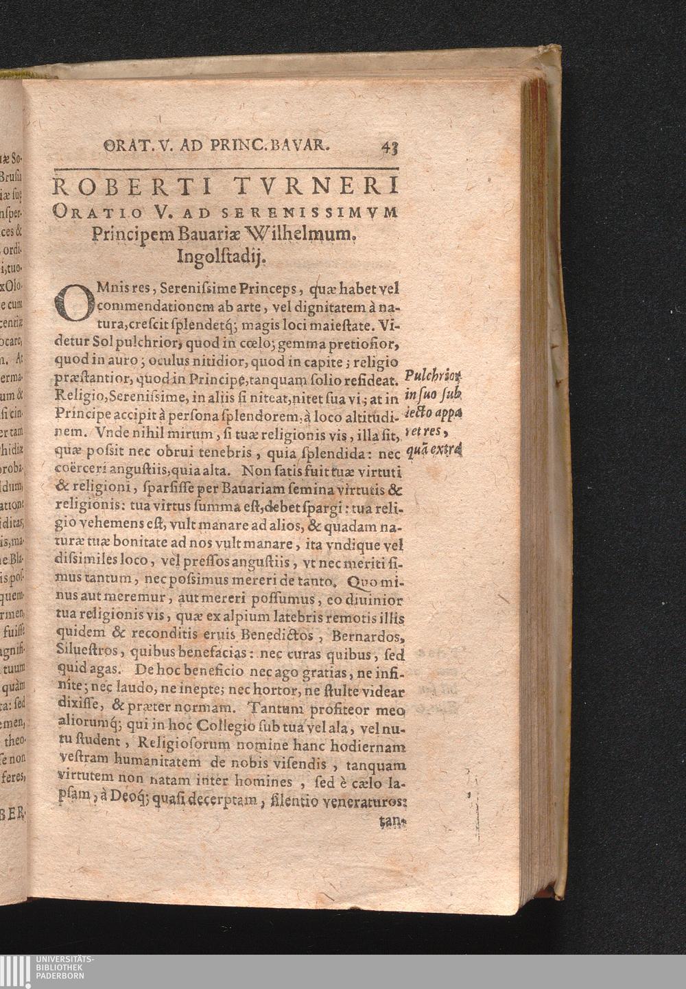 Secvndvm (1625) Roberti Turneri Viri Doctissimi Professoris In Academia Ingolstadiensi Orationum Volumen Secundum